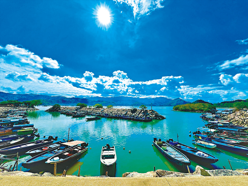 日月亭對出的海旁則是被稱為「鏡中鏡」的景點,該處乃是避風塘,上世紀60年代為鶴佬與水上人漁船聚集地,1962年颱風「溫黛」襲港令大部分漁船被毀,漁民因而遷居岸上搭建棚屋,漸變成一大片寮屋區,政府於1985年興建郊區公共房屋,寮屋居民在1988年獲安置到屋邨居住,棚屋已成絕響,現時上址則泊滿大量小漁船,而眺望沙頭角海,儼如一塊天然大鏡,在該處拍照,可拍到水天一色的景象。