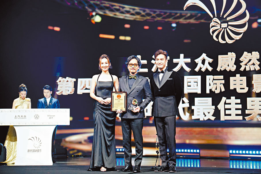 香港文匯報訊(記者 阿祖)前晚於澳門舉行的「第四屆新時代國際電影節金揚花獎頒獎盛典」中,謝君豪(豪哥)憑電影《毒舌大狀》資深大律師金遠山一角獲得「新時代最佳男配角獎」,並由新婚的馬國明頒獎,對於演技再一次獲得肯定,豪哥就指2023年收穫滿滿,這晚獲得最佳男配角獎,令今年有個圓滿句號。