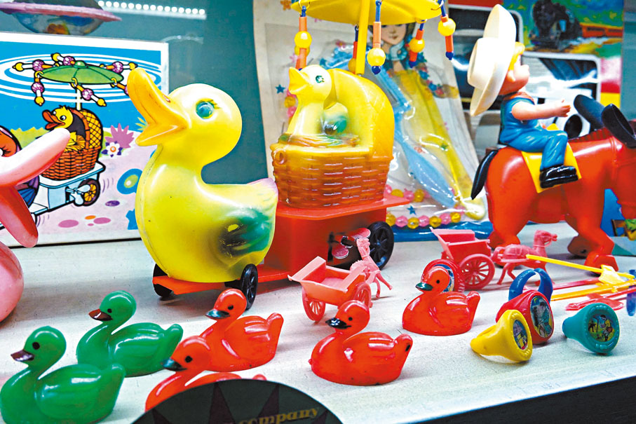 阮家儀的收藏品產於1940至1980年,細看物件類型和上面的標記,香港的歷史也躍然而出。40至50年代,她收藏的是牙刷:「戰後物資緊缺,玩具業還未興起,塑膠業主要生產日常用品。那時香港無人知,所以牙刷上印的是British Empire Made。」50至60年代,玩具業方興未艾,收藏的種類也紛呈,有塑料鴨仔、扮煮飯仔的各類玩具等,阮家儀說:「那時產的一套茶杯玩具,每隻杯、碟上都寫着Hong Kong,強調香港製造,我感覺是因為50年代前壓抑了太久,當可以標記產地本名,人們都為香港製造而感到驕傲。」這階段的玩具有着半機械半人手製作的瑕疵痕跡,而到70至80年代,全機械製造開始普及,瑕疵變少了,玩具也更加堅固耐用。