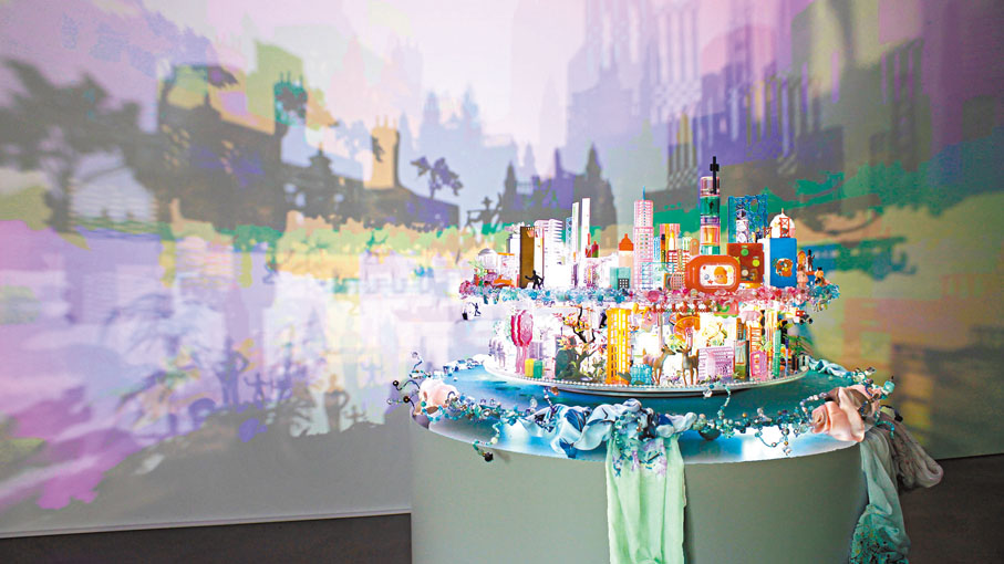 阮家儀創作的裝置《登陸何處》今年在香港藝術館展出,作品上聚集着鱗次櫛比的懷舊物件,有梳子、鏡子、直尺、茶葉罐、奶樽、積木、珠子……出人意料的是,它們在牆身上投射出流光溢彩的景致,竟然是有今有昔、有建築有人的香港。「這件作品在香港藝術館開箱時,有很多工作人員圍觀,他們都已經上了年紀,但從中認出了很多他們見過、玩過、用過的東西。」阮家儀說,在她找到這些物件的時候,都好像找到香港曾經的一段歷史和故事,像是拼圖的碎片,不同年代的產物中,也可以看到和歷史息息相關的變化。