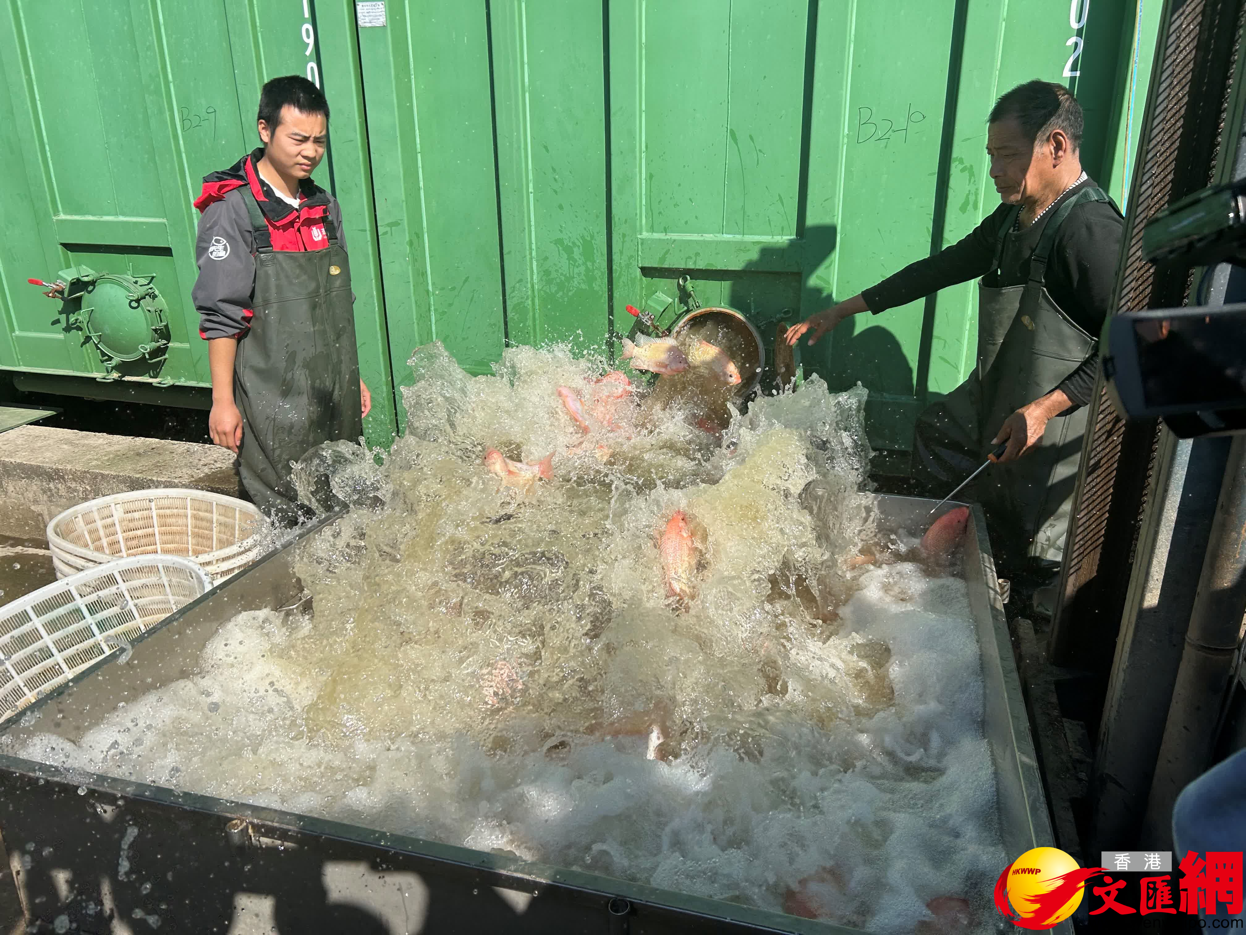 (香港文匯網記者 敖敏輝)訂單式養殖、集裝箱分區餵養、恆溫接駁配送……連日來,記者在位於廣東肇慶鼎湖區的「綠色魚」水產標準化生態養殖基地看到,通過這這種數字化、綠色化養殖和智能化供應鏈的新模式,使得來自大灣區的一條彩虹鯛魚,遠跨2000公里輸送到北京,再配送到消費者手中,魚仍是活蹦亂跳,新鮮如初。27日,「綠色魚」水產標準化生態養殖基地正式掛牌盒馬村,這也是阿里巴巴旗下新零售平台盒馬在全國布局的首個綠色魚盒馬村。