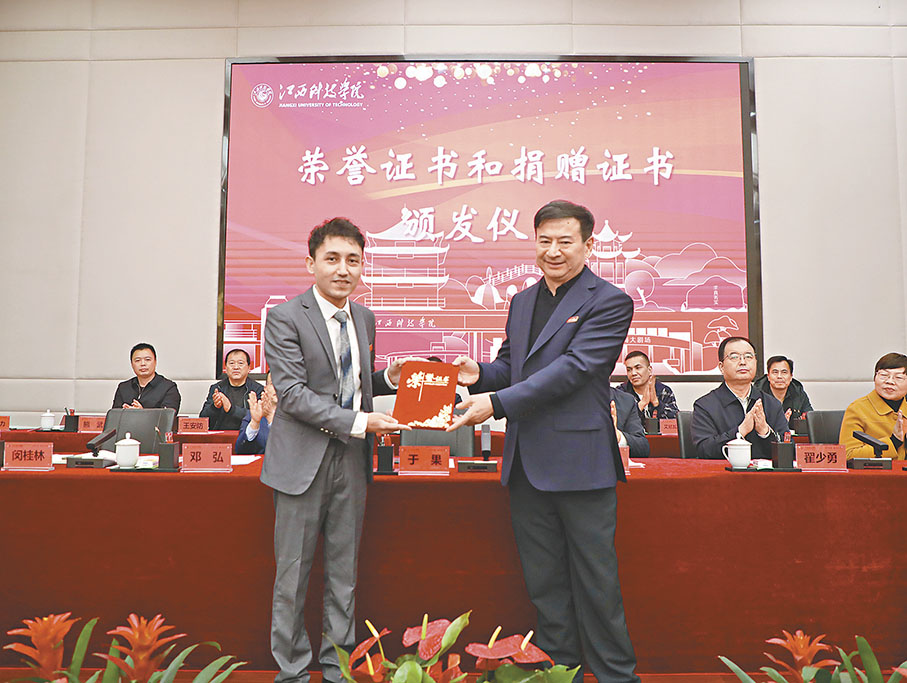「母校(江西科技學院,創建於1994年的江西省高級職業學校)今年迎來30歲生日,我今年也正好30歲。十年來,我從母校收穫到太多。如今,我覺得,我應該為母校做點什麼。設立獎學金,只是自己表達謝意的開始……」2023年12月30日,「90後」新疆青年米拉迪力·麥麥提阿伍拉在母校江西科技學院30周年校慶之際,捐獻100萬元人民幣,設立「石榴籽民族團結獎學金」,以獎勵為民族團結事業作出貢獻的學生和資助家庭困難的學生。 ◆香港文匯報記者 王逍 江西報道