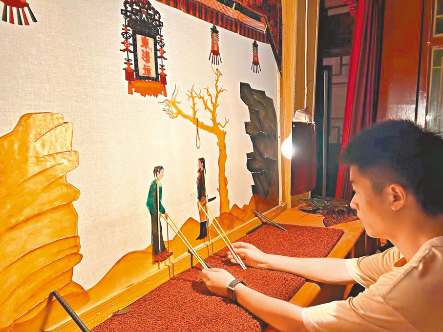 「騰騰殺氣威,武藝戰高魁。韜略世無比,行兵把將摧。本帥狄青,今與韓天化教場比武……」在西安市回民街的一家皮影社裏,隨着《刀劈韓天化》這齣著名的皮影戲播到高潮,只見白幕上的皮影人物馬上馬下輪番作戰,狄青手起刀落,將韓天化的頭顱瞬間砍下。精彩的演出博得了台下觀眾的熱烈掌聲。而白色幕布的背後,表演者是一位來自陝西省渭南市華州區的「95後」青年。他叫孫贊,自2017年開始正式學習華縣皮影戲表演,如今已成為陝西傳承華縣皮影戲的年輕代表之一。◆香港文匯報記者 張仕珍 西安報道 圖片由受訪者提供