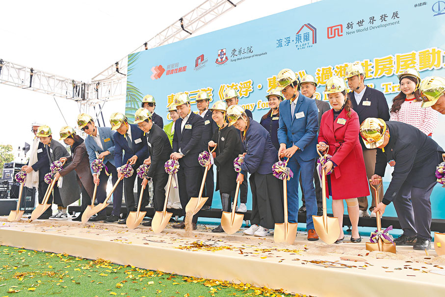 過渡性房屋項目「流浮·東寓」昨日舉行動土典禮,項目由新世界發展借出土地、東華三院興建和營運,預計可興建1,233個單位、於今年底至明年初竣工。