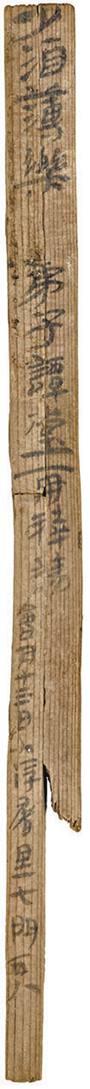 「現在看到的這枚簡,叫敦煌浮屠簡,這是為目前發現佛教傳入中國最早的文獻實物資料。其年代範圍應在公元五十一年至公元一百零八年(東漢中早期),這是我們敦煌佛教傳入最早的一個漢簡記錄史料,就這麼唯一一份。」韓華告訴記者。浮屠簡上的文字完整,第一行大字寫着:「少酒薄樂。弟子譚堂再拜請。」第二行落款為「會月廿三日,小浮屠裏七門西入。」這是一份通知書,也可以說是請柬。從浮屠裏這個名稱可以推斷,這是信仰佛教的人居住的地方,可見在公元一世紀,敦煌就有一群有着共同佛教信仰的人集中居住。這比以往認為的佛教傳入敦煌的時間要早200年左右,證明佛教傳入敦煌的時間是公元一世紀的下半葉。而且一開始就流行在民間,比竺法戶在敦煌翻譯佛經的時間要早兩百年,比敦煌莫高窟石窟開鑿的時間還要早三百年。