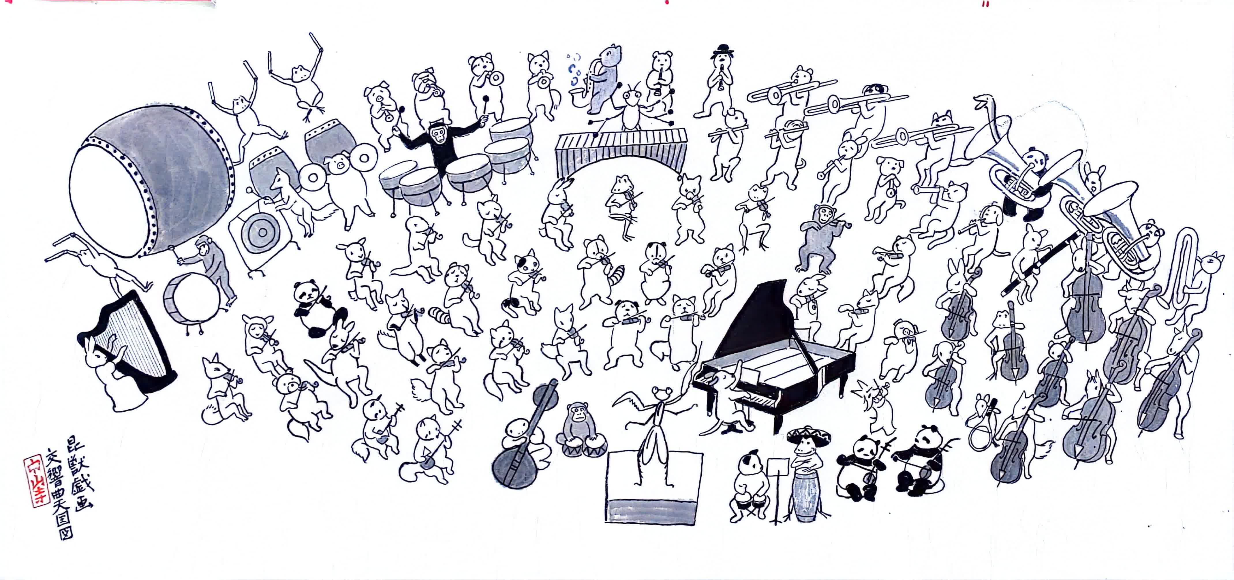 「月岡貞夫對中國充滿感情,到中國美術學院教學後,向中國美院捐贈了很多作品,包括日本各個時期的手稿、膠片、賽璐璐片、海報等。」中國美術學院教學督導工作委員會副主任吳小華教授表示說,中國美院動畫當時聘請了月岡貞夫、蔡志忠和戴鐵郎幾位著名動漫大師,帶出了一批動漫人,給我們很多啟發。日本動畫成長的土壤比較豐厚,明年我們還會做一個日本動畫現象展。月岡先生這次創作的鳥獸畫,也是參照了日本早年浮世繪的作品,激發了他的聯想,前段時間他還去了少林寺,回來又創作了二十多張少林寺的拳法。當下進入人工智能數字時代,沒有這樣的體驗感,是激發不了這種原創的激情的。