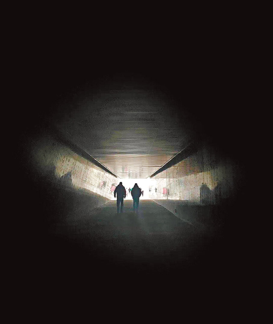 展館的出口是一段漫長且焦黑的上坡路,參觀者迎着光走出展館。「別回頭,向前走,出口有光,有人間煙火,有國泰民安;別忘記,來時路,有民族苦難,有國恨家仇。」遊客紛紛表示,這一段參觀結束語,升華了參觀遺址的意義,激起人們家國情懷。展館解說工作人員告訴香港文匯報記者,我們希望通過這個通往光明的出口,告誡世人,沉痛的歷史不敢忘,落後就要被人欺負,所以我們要努力向前,自強不息,迎向光明的未來。