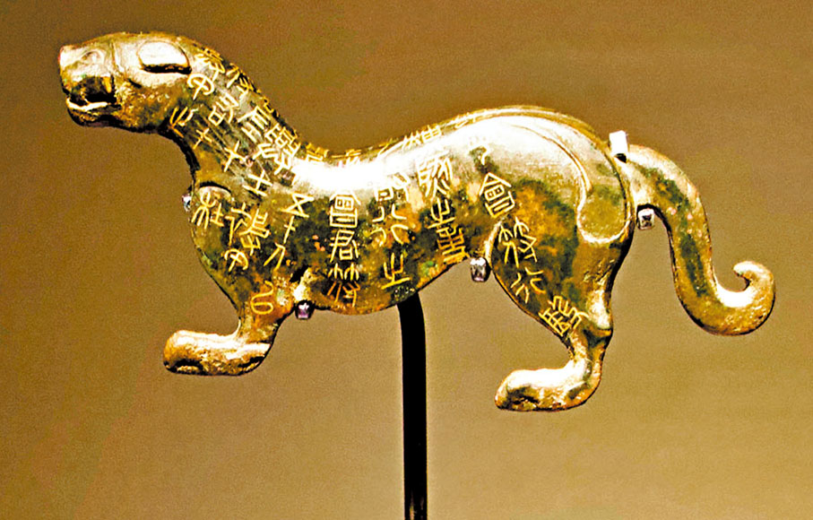 據介紹,虎在古代民間是守護神,在軍中同樣被賦予了神奇的力量,其威猛雄武的形象,常被用來讚譽軍中勇猛善戰的將士,因而古代調兵遣將的信物也多被製成虎的形象,稱為「虎符」。陝西歷史博物館珍藏的杜虎符,是目前我國所知時代最早、銘文字數最多的一件秦國虎符,其造型生動,錯金渾厚,銘文謹嚴遒勁,是公認的國寶級文物。