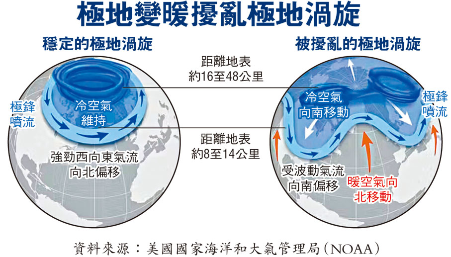 全球升溫擾亂「極地渦旋」引發冷空氣南移
