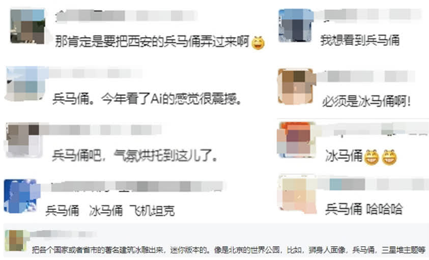 (香港文匯網記者 王欣欣 哈爾濱報道)中外遊客驚嘆於哈爾濱冰雪大世界冰雕冰建的神奇的同時,對冰雕作品也寄予了很多願望。近日,一組名為「冰馬俑」的照片迅速走紅網絡。據了解,照片中的「冰馬俑」由人工智能合成,並非真正的冰雕作品。而在哈爾濱冰雪大世界官方發布的「你想在下一屆冰雪大世界看到什麼?」文章下,網友紛紛喊話想看「冰馬俑」。冰雪大世界再次實力寵粉,兩天內高還原度雕刻出「冰馬俑」,為遊客「圓夢」。
