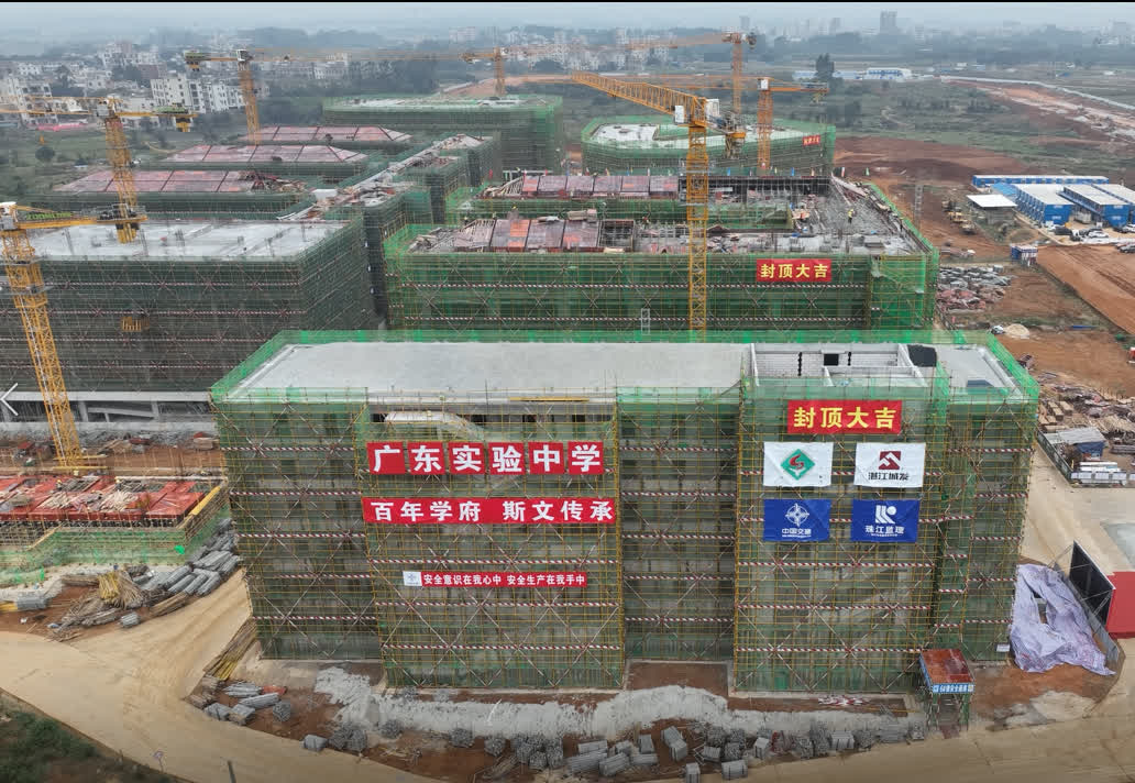 該項目於去年9月開工以來,中交四航局項目建設團隊克服了工期緊、工作面多、工序複雜等諸多困難,迅速有序開展施工生產,帶領500百餘名施工人員,僅用128天完成從基礎開挖到主體結構封頂。下一階段即將進行裝飾裝修施工,項目計劃於今年7月完成交付,力爭今年9月正式開學。