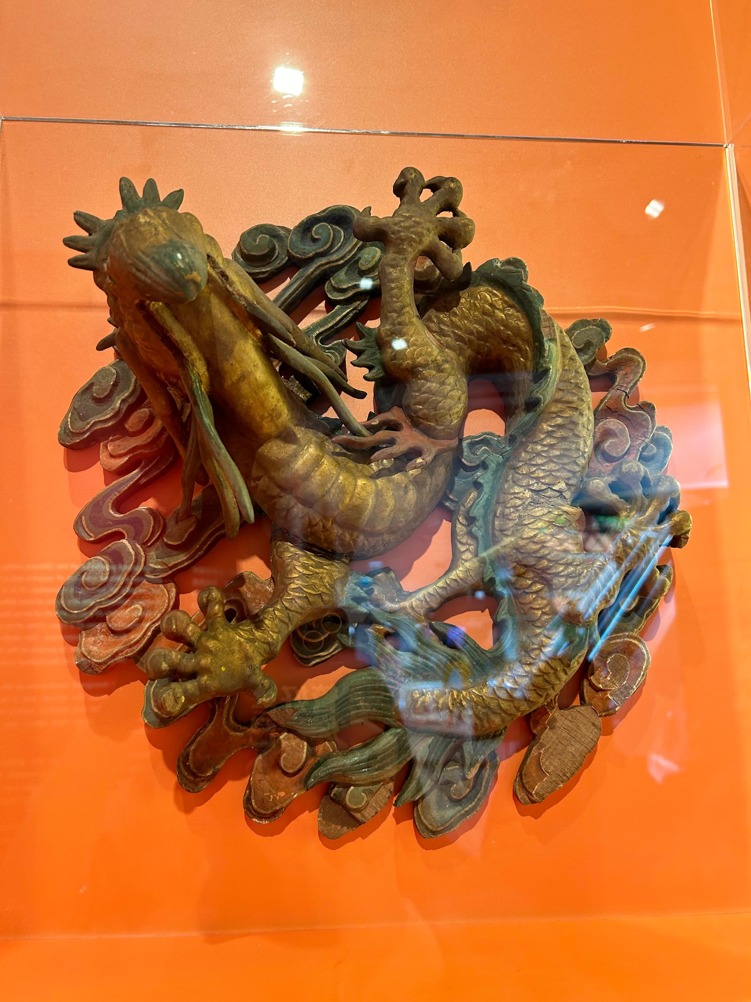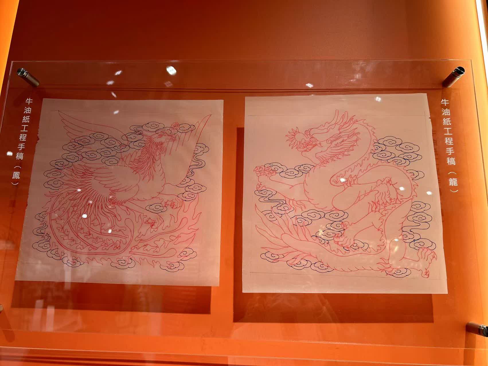 甫踏足GATE33藝文館,就會看到大紅絨幕牆上有對金碧輝煌的龍鳳木雕,復刻七八十年代本土婚宴排場「龍鳳大禮堂」。由資深木雕師傅蕭炳強親手由零開始一刀接一刀製作,然後上漆、鋪金,不但氣勢如虹,且有龍鳳呈祥(情長)的美意。