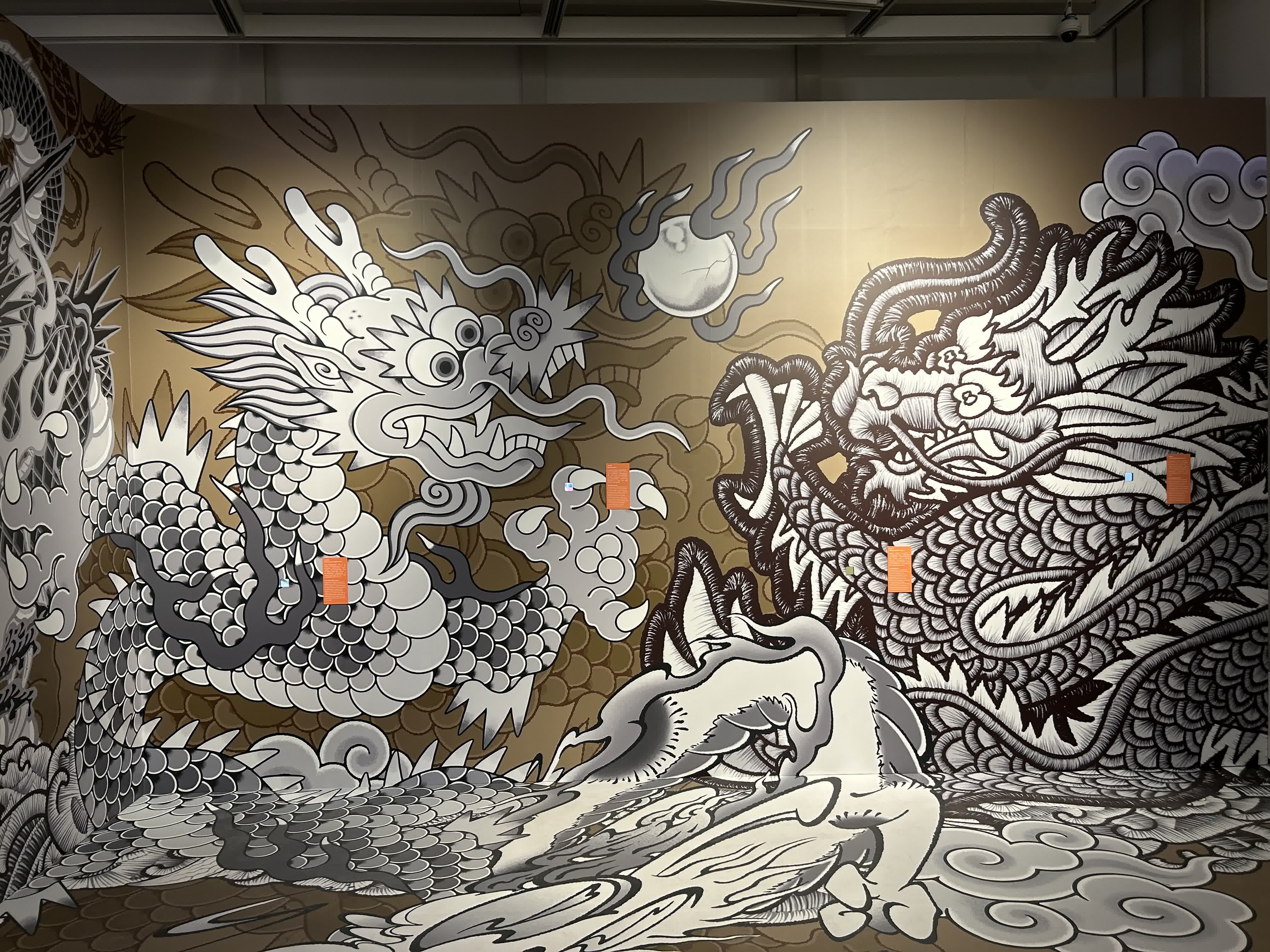塗鴉藝術家Uncle852,以街頭塗鴉肆意奔放的筆觸及反叛顛覆精神,演繹本地潮語、生肖及新春祈願等港式及傳統中華文化。以塗鴉呈現的「龍」字賀語,融入舞動中的巨龍形態,突顯漢字作為世上唯一具圖象化的字型的獨特之美。