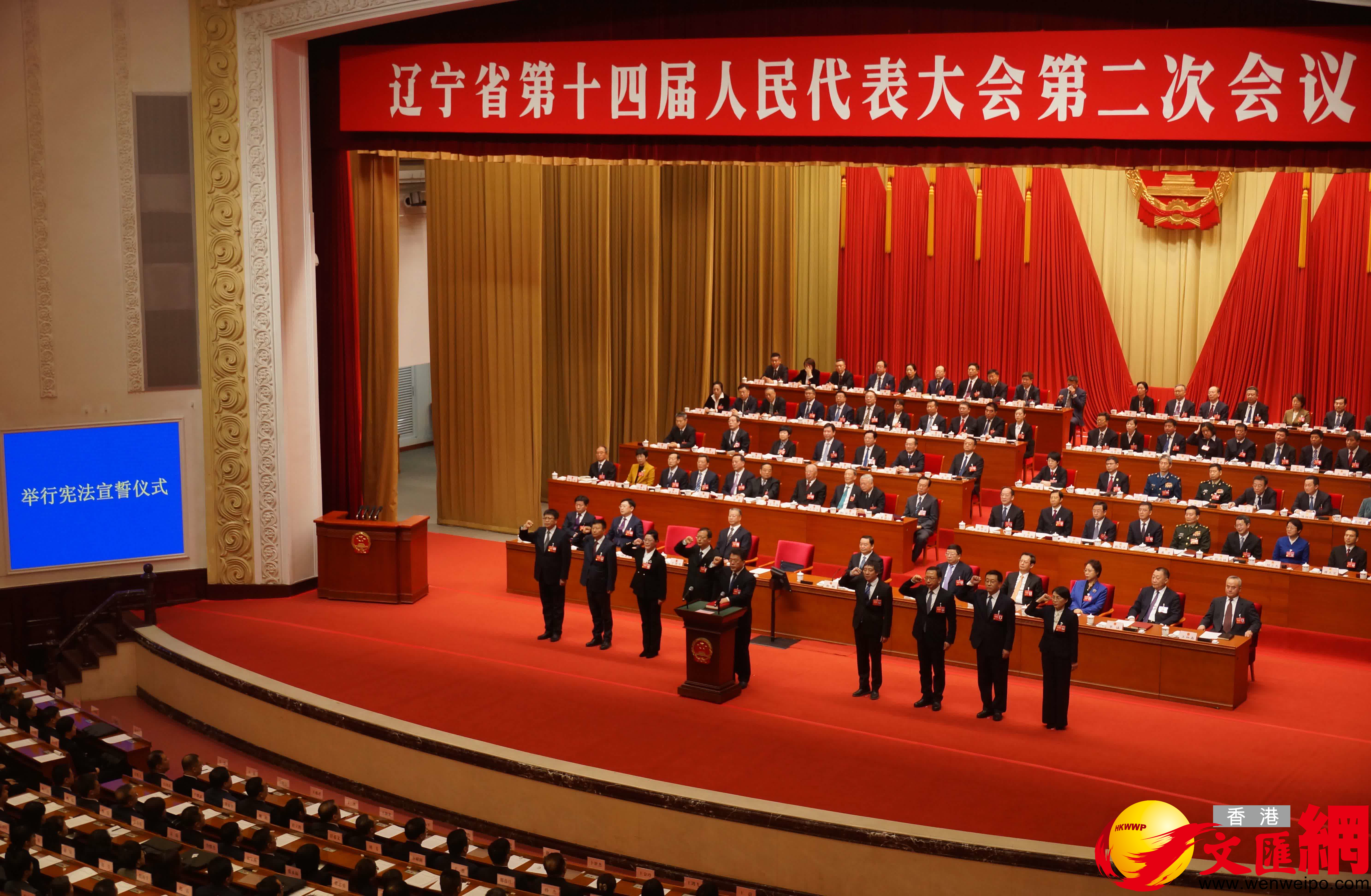 (香港文匯網記者 于珈琳 瀋陽報道)遼寧省十四屆人大二次會今日(26日)上午閉幕。大會採用無記名投票方式,選舉劉慧晏、許光文為遼寧省第十四屆人民代表大會常務委員會副主任,選舉王慶東、王彤陽、馮英、來鶴、宋彥麟、張為、張寶東為遼寧省第十四屆人民代表大會常務委員會委員。隨後,新當選的人大常委會副主任、委員向憲法宣誓。