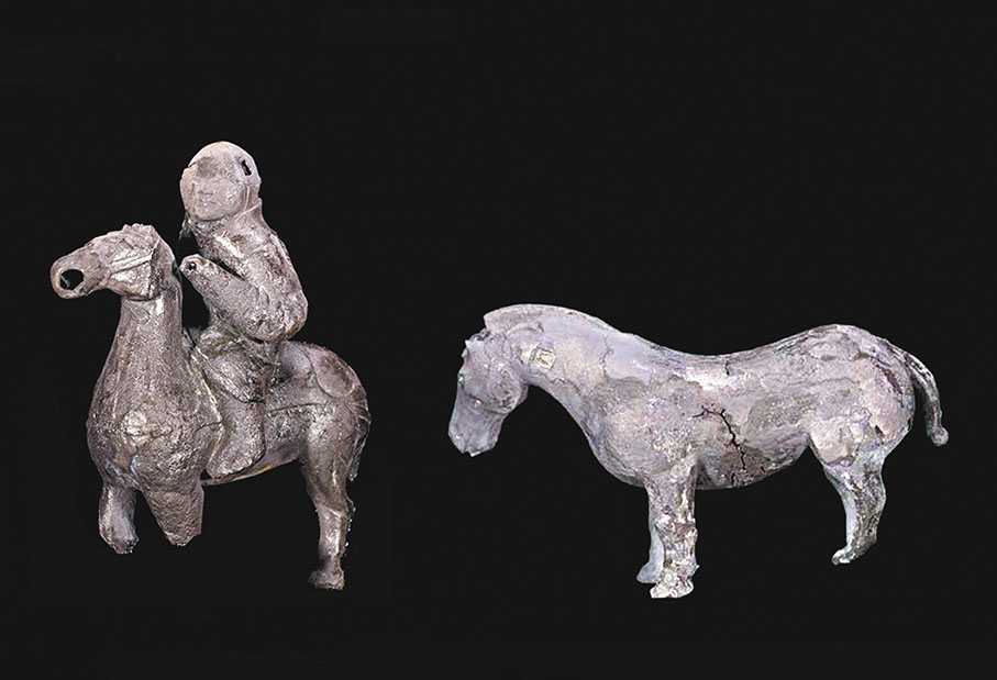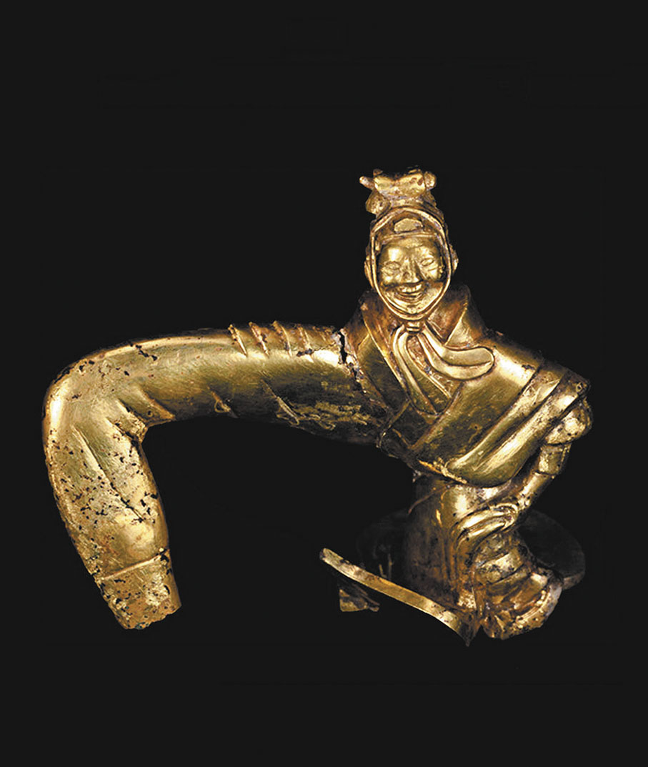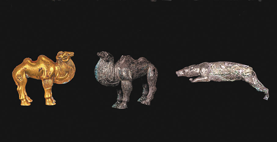 雖然與兵馬俑高大魁梧的外形相比,這些金屬俑普遍形態較小,但在形象刻畫上較為一致。無論是金舞袖俑,還是吹奏俑、百戲俑,既帶有和陶質兵馬俑相似的冠飾,臉龐亦都精雕細刻得十分精細。在日前央視綜合頻道2024年精品節目發布會上,秦始皇帝陵博物院院長李崗曾表示,金舞袖俑等小型金屬俑的立體造型藝術,與兵馬俑的藝術風格相似,代表了秦代極高的藝術水平。而金銀駱駝則是兩千多年前,東西文化交流的實物見證。