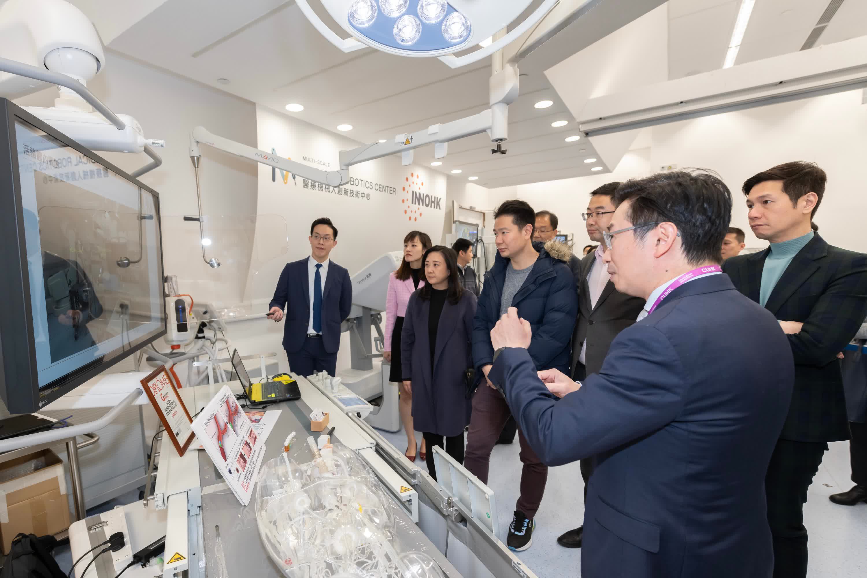 在創新科技及工業局副局長張曼莉陪同下,議員隨後參觀了四間分別專注於物流機械人、醫療機械人、生物醫學儀器和阿爾茲海默症的診斷和治療等不同範疇的研發中心。參觀期間,議員與科研人員交流,了解其研究和所需的支援,以及InnoHK如何協助將科研成果「落地」,轉化為解決現實問題的方案。