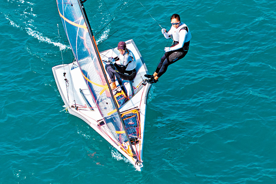 29er型帆船港將Emily Polson及麥曉彤一向表現出色,去年,二人不但在首屆「29er亞錦賽」中封后,更於隨後8月舉行的「29er帆船世界錦標賽U17」掄元,實力不容置疑。賽前二人表示,即使頂着兩大賽事「冠軍級人馬」的光環,今年再度披甲上陣;卻沒有太大壓力。因為,二人平常訓練有素,而每次比賽都當是一場新挑戰,只要把應有的水準發揮出來即可。昨日的首日賽事設四場比賽,二人在四場均排名第一,氣勢如虹。