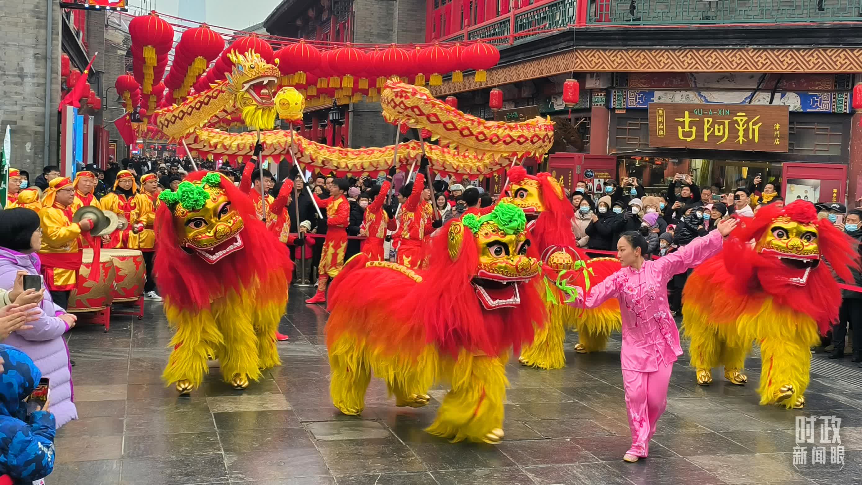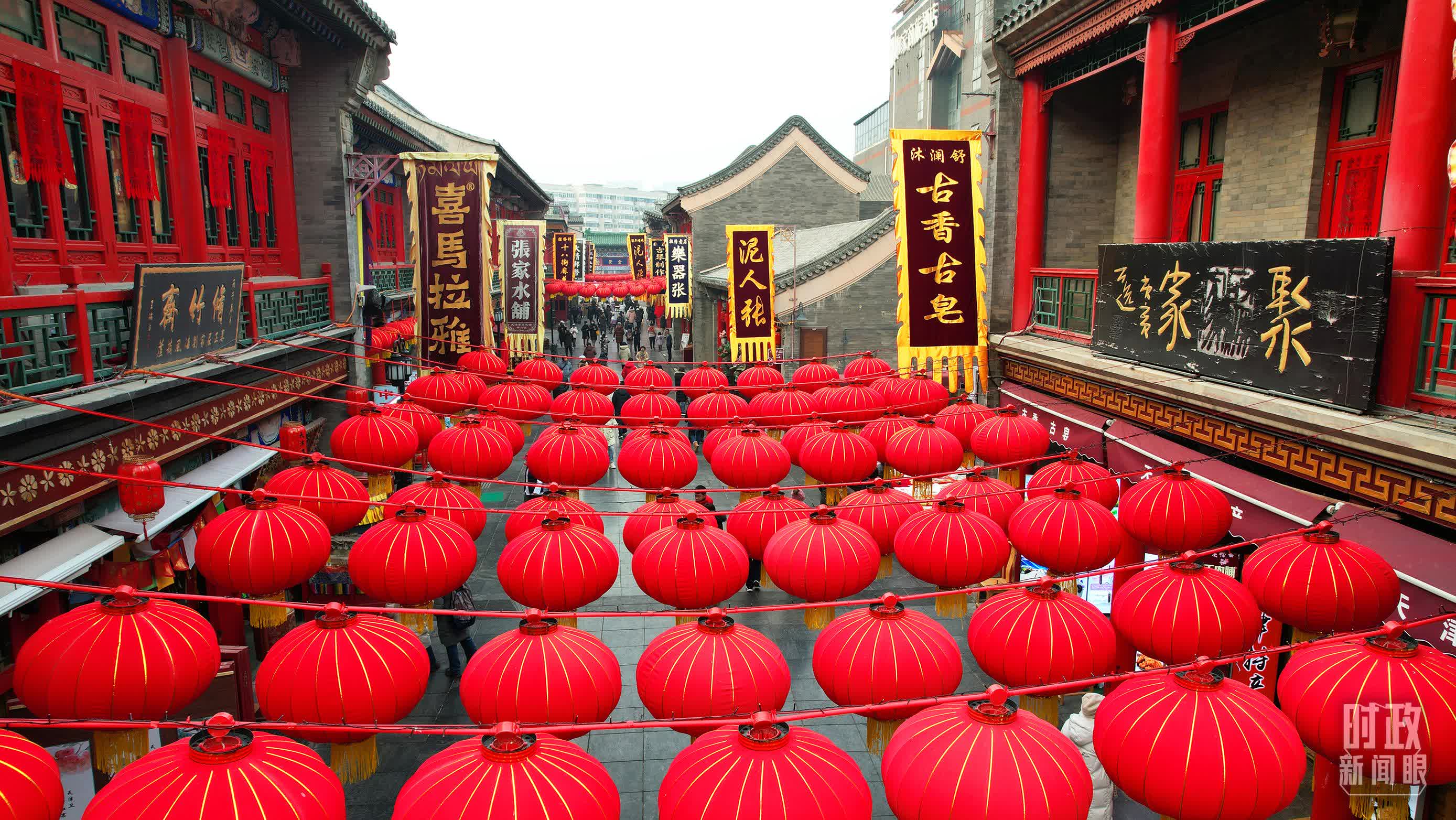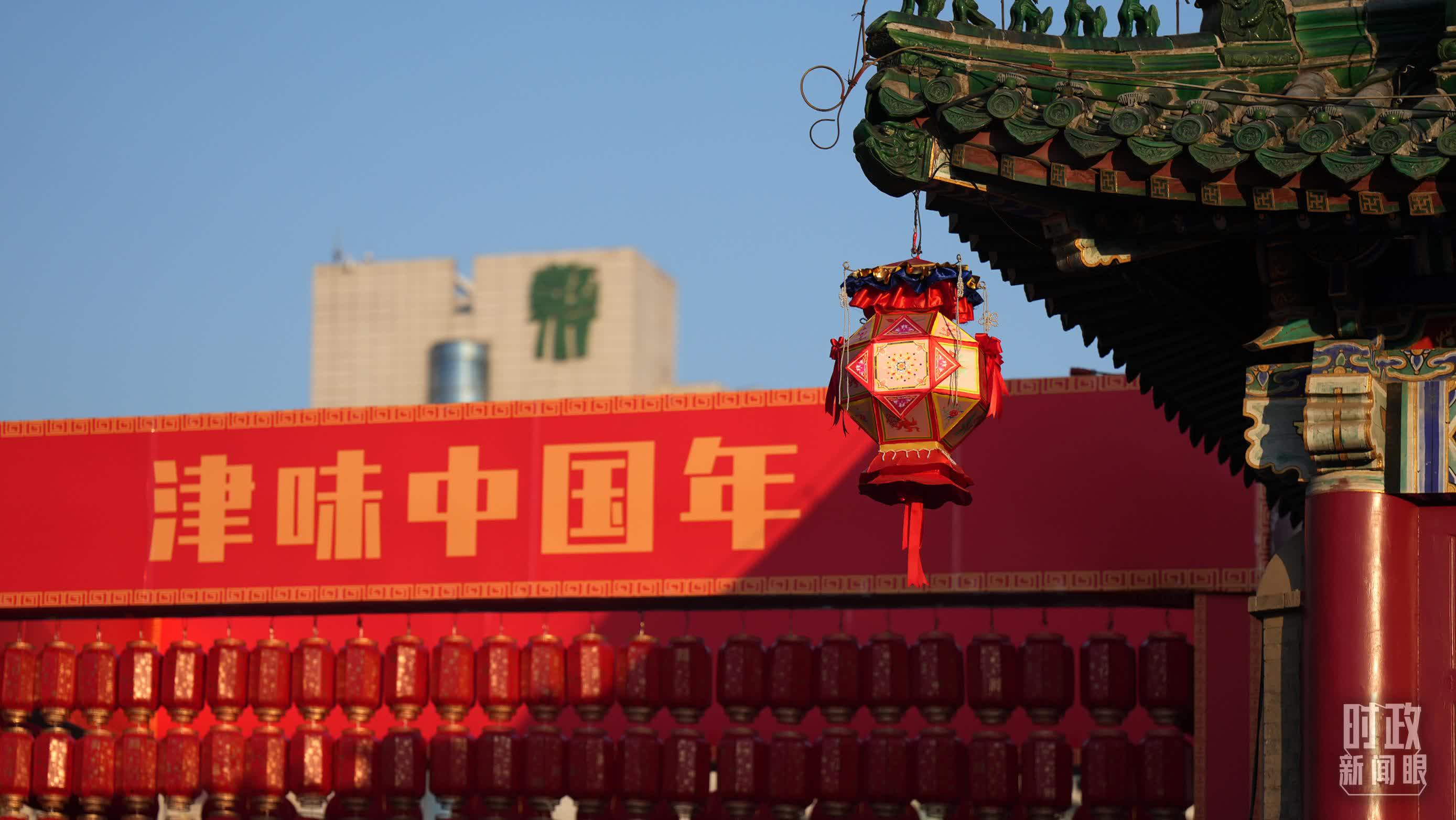 春節將近,天津古文化街掛滿紅紅的燈籠,舞龍舞獅表演走上街頭,中國味、天津味、古味、文化味、年味十足,前來採買的市民遊人絡繹不絕。
