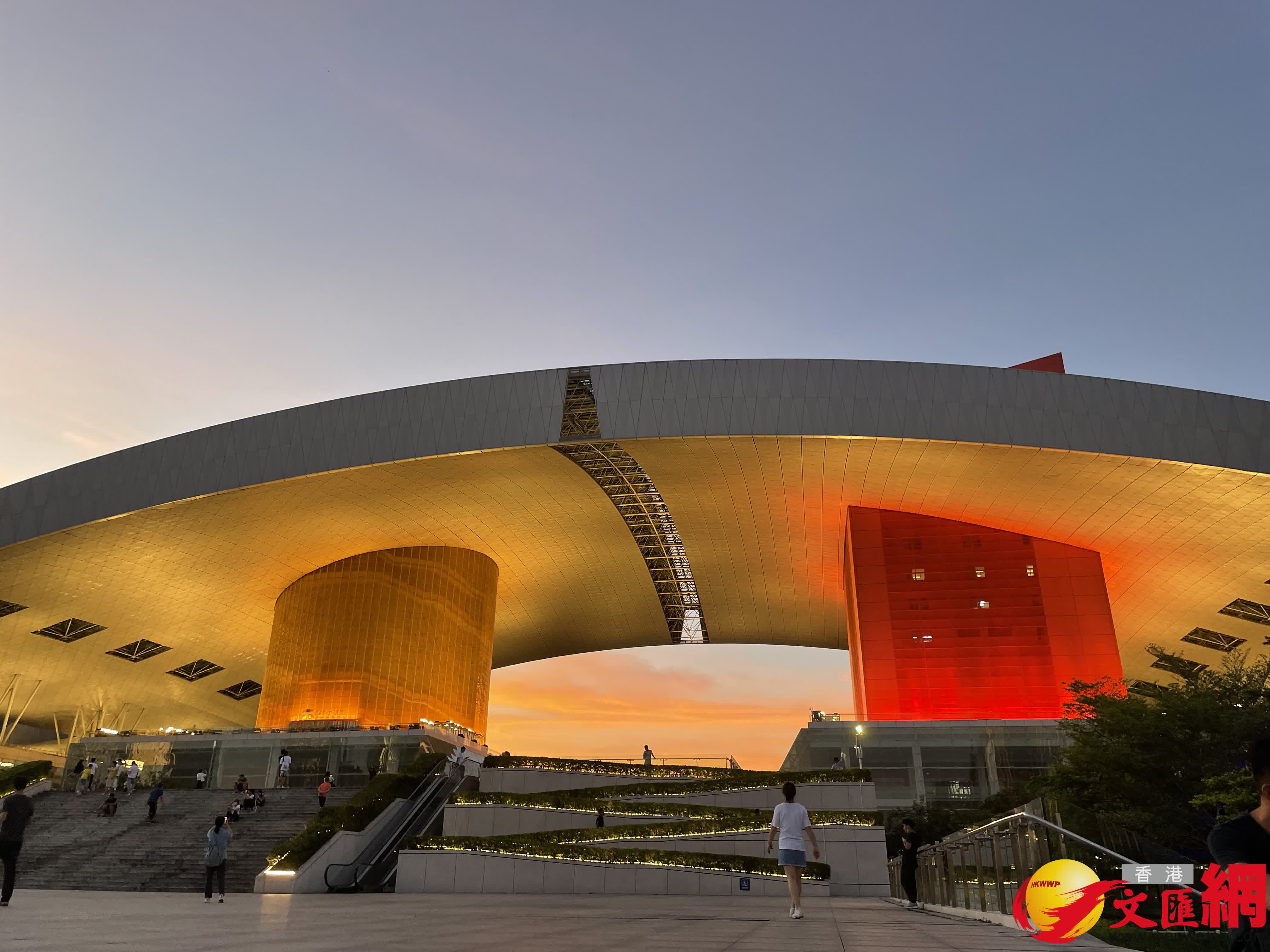 市民中心是來深圳福田旅行繞不開的地方,他北靠蓮花山,南向中央商務區,是集政府人大博物館、會堂等多功能為一體的綜合性建築,具有行政中心的地位,建成後將成為深圳市重要的標誌性建築。整個建築規模龐大,地下一層,地上五層,總建築面積為21萬平方米,建築總長度為435米,最大寬度為145米。整體建築造型似大鵬展翅,氣魄恢宏,是國內首例「沒有圍牆的政府」。
