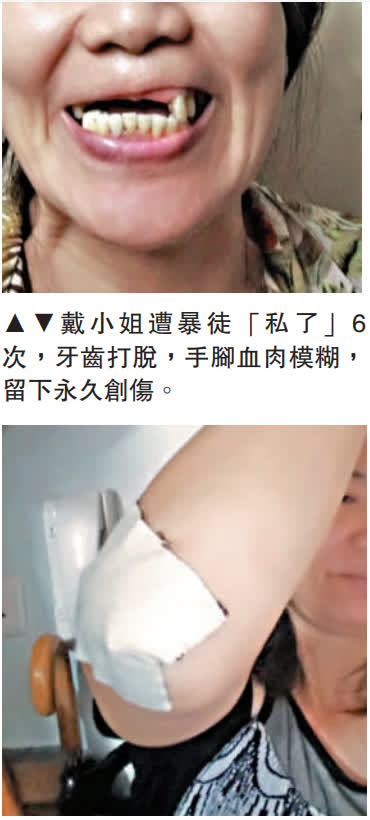 (大公報記者 張真)「有些傷痕刻在心裏,即使肉體上的傷已經不痛,心靈創傷卻仍隱隱作痛。」因為多次清除「連儂牆」及公開支持國安法立法,戴小姐曾被暴徒「私了」6次,上齒被打至脫落,眼角膜受損,留下了永久的創傷。