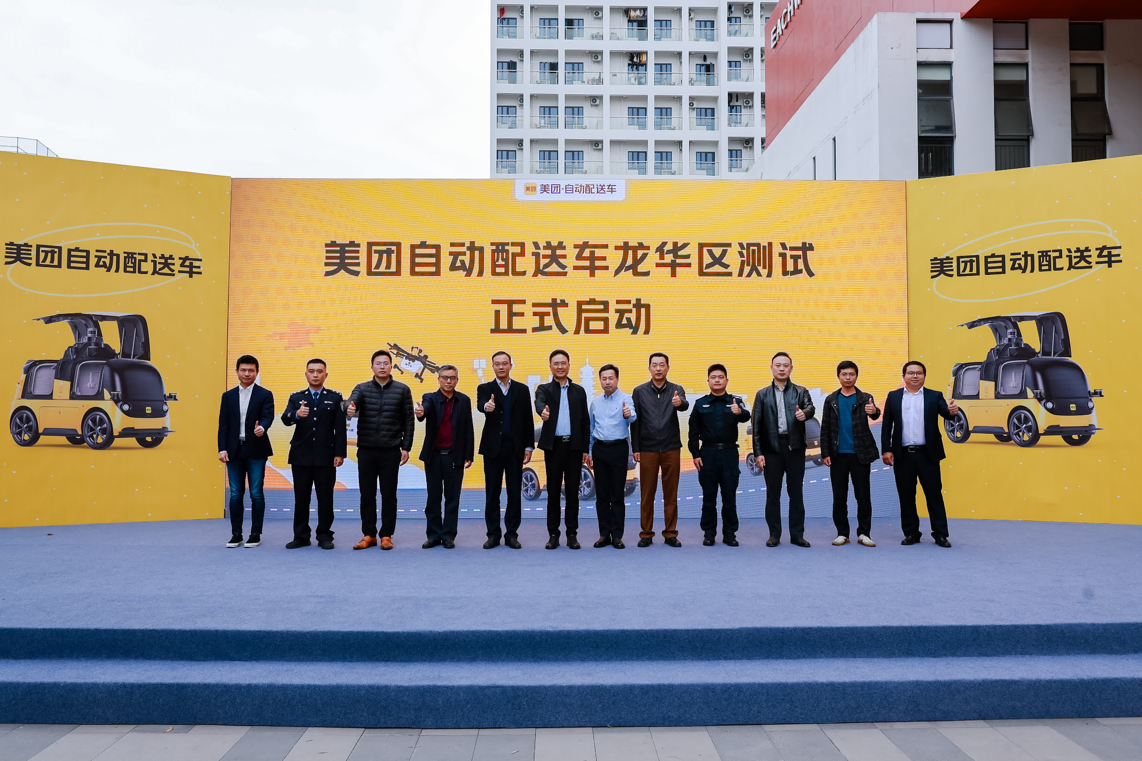 當天,深圳龍華正式啟動首個自動配送車公開道路測試試點,測試將首先在大浪時尚小鎮周邊道路展開,並將逐步從「小範圍測試」拓展至「大片區試點」,持續擴大覆蓋範圍、增加車輛、延長測試和運營時間。美團作為首家進入試點的企業,在測試成熟後,將正式為周邊社區居民們提供自動車配送服務。