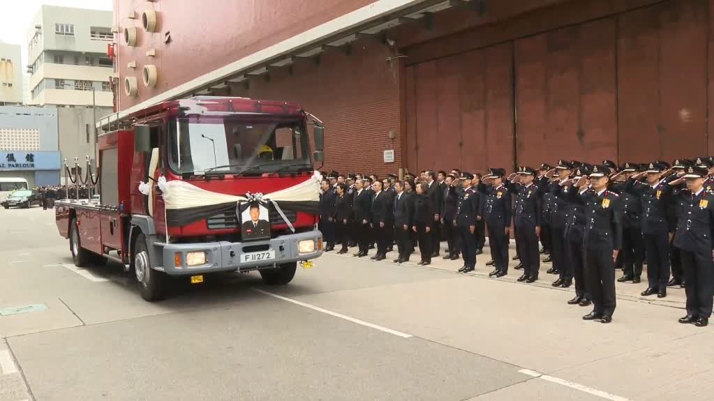 消防員邱耀文於1月19日在大嶼山迪士尼樂園度假區神奇道處理一宗交通意外期間身亡,終年49歲。消防處今日(6日)在九龍紅磡世界殯儀館為他舉行榮譽葬禮,保安局局長鄧炳強及消防處處長楊恩健到場弔唁。