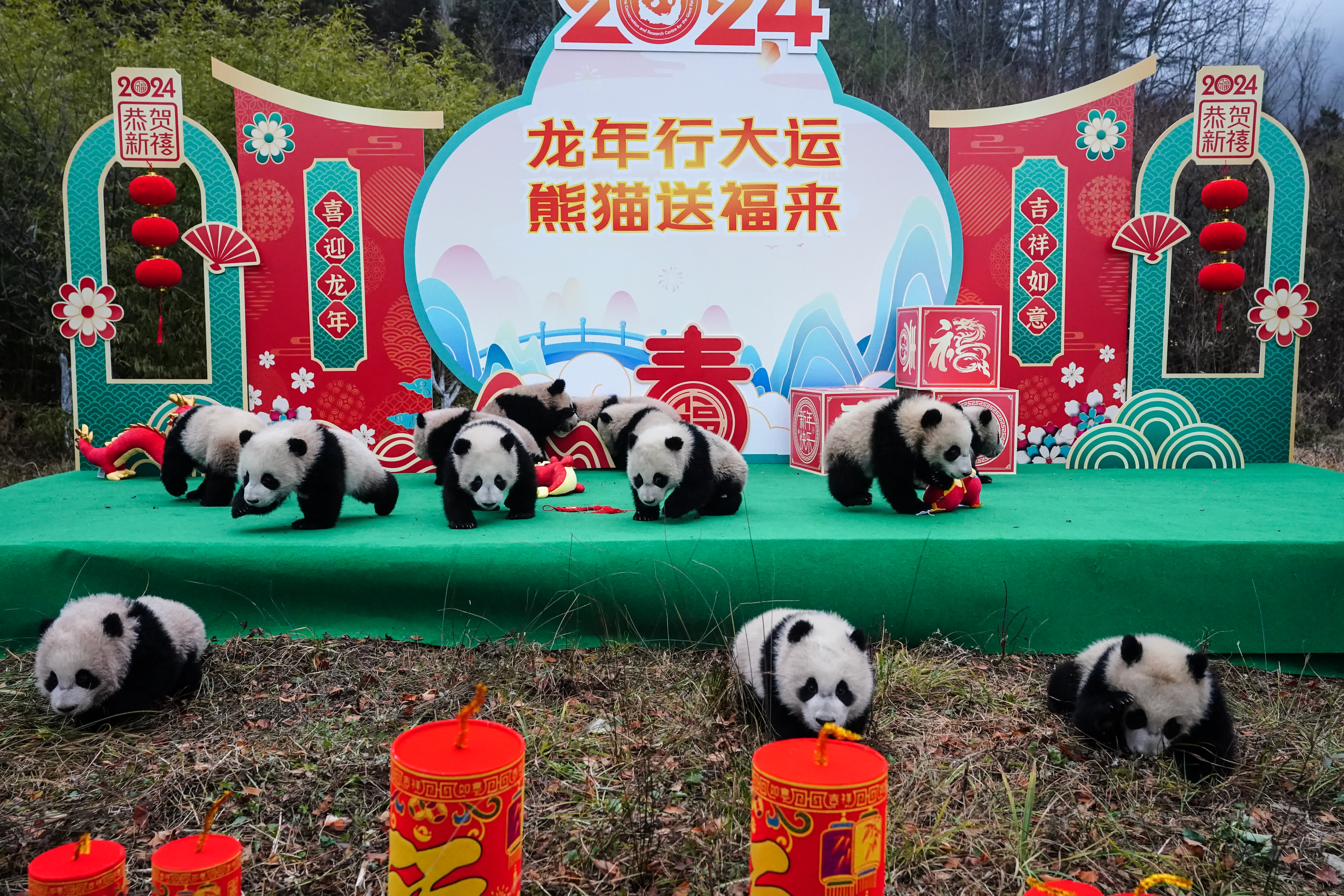 (香港文匯網記者 向芸)龍年春節臨近,中國大熊貓保護研究中心(以下簡稱「熊貓中心」)和成都大熊貓繁育研究基地(以下簡稱「熊貓基地」)聯合舉辦「龍年行大運 熊貓送福來」新春主題活動,2023級新生熊貓寶寶同步拜年,讓年味更濃、祝福更足。此次熊貓寶寶集體送祝福活動也是熊貓中心和熊貓基地首次聯動賀歲。