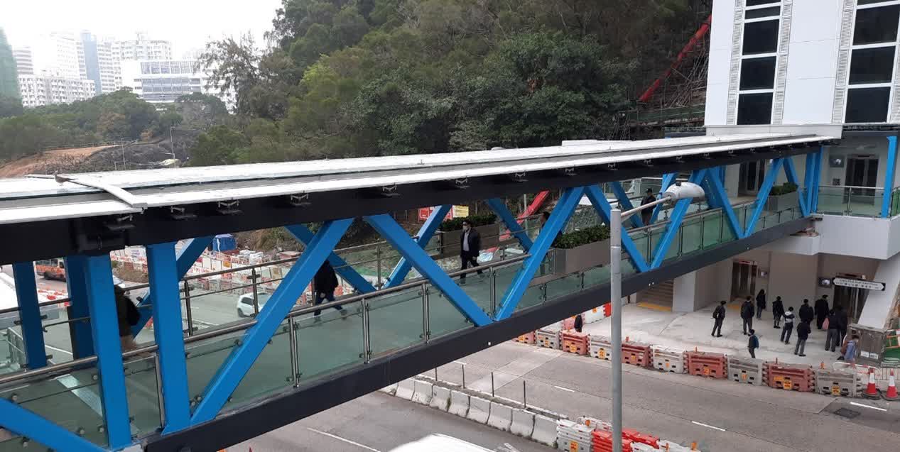 運輸及物流局長林世雄今日(17日)發表網誌,介紹上月底啟用的「葵涌青山公路至工業街升降機及行人通道系統」,指路政署首次以「組裝合成」建築法,建造高架行人通道,較傳統施工方式減少超過1個月;工程團隊毋須再在鋼架結構上搭建大型臨時工作平台和在高空安裝非結構部件,大部分工序在地面完成,減低施工人員風險,亦免卻在行車道上方多次吊運不同部件的需要,大幅減少臨時封閉青山公路和周邊行人路的次數和時間,達致提升工程人員、駕駛者與市民安全、方便的三贏局面。