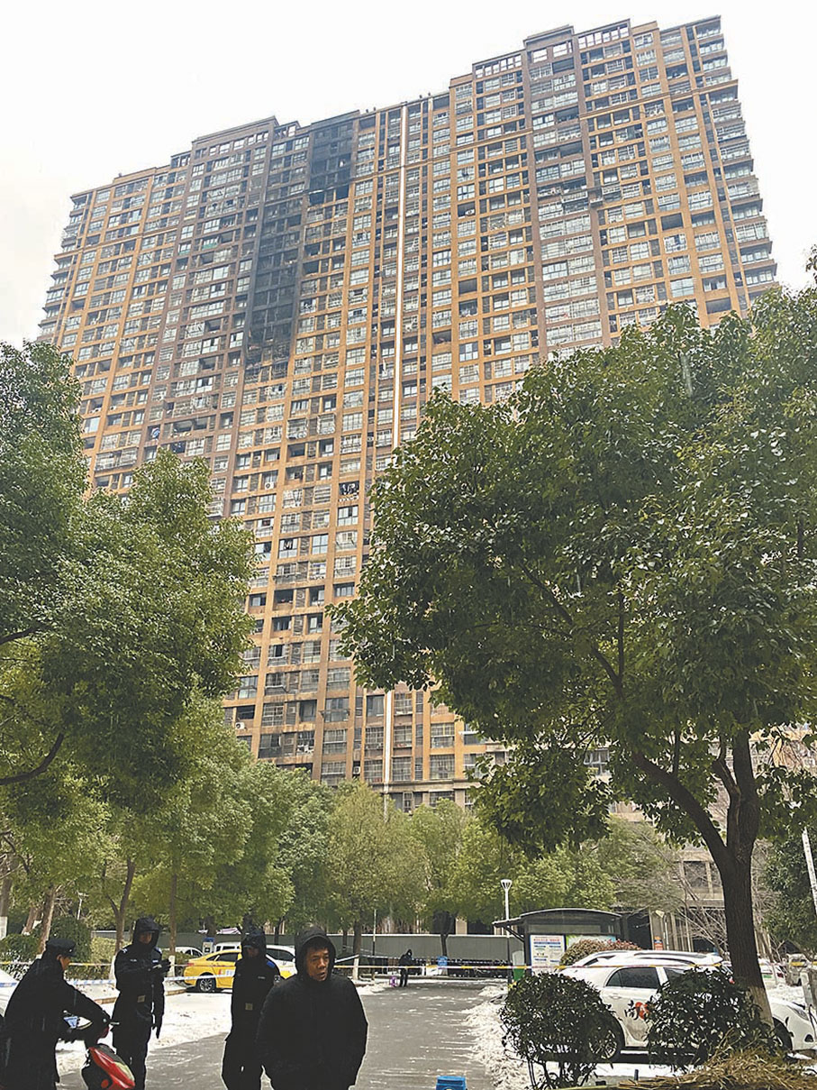 2月24日晨,南京飄雪。「你住在幾單元?」發生火災的明尚西苑第六棟樓前拉起警戒線,值守警察對進入警戒線內的人員逐一盤查。