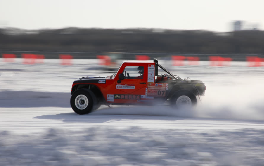 選手們在覆蓋着白雪的黑龍江冰面上駕駛賽車追逐、漂移,在冰天雪地裏展示着風馳電掣的速度與激情。比賽現場,卡瑪斯大師車隊還進行了表演賽,讓觀眾大飽眼福。
