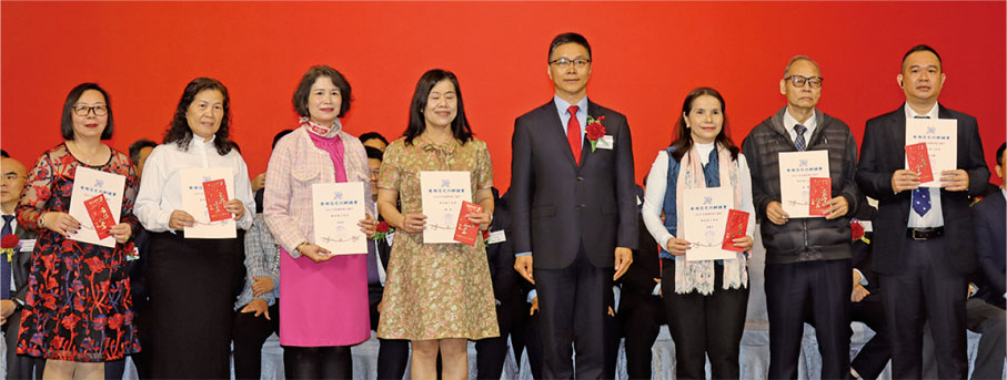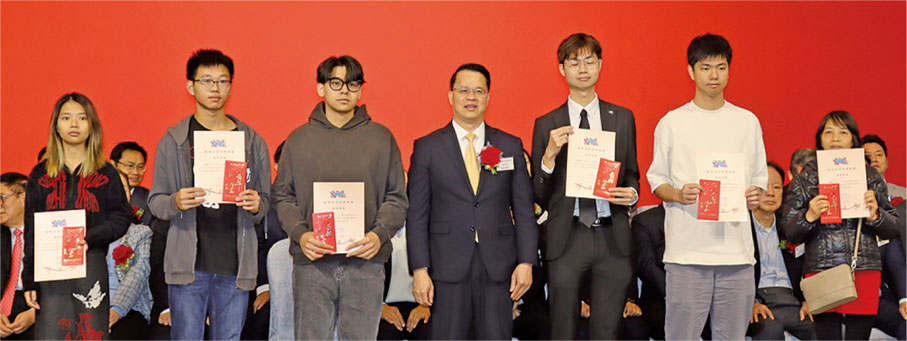 其後,茂總執行常務副主席葉志光率台上全體領導嘉賓祝酒。茂總更為多名成績優異並獲高等學府錄取的在港茂名子弟頒發獎學證書,並資助他們每人港幣一萬元以作鼓勵。希望他們能夠再接再厲,學好專業知識,畢業後回饋社會。隨後,茂總又為在去年活動中作出突出貢獻的義工團成員頒發獎狀,希望他們新的一年繼續奮鬥、繼續唱響他們雄壯勵志的歌聲。茂總主席容冰、南會會長關振浩、電白會常務副會長馮靜岳、高州會會長劉恒智及化州會秘書長葉家樂分別為優秀義工隊員頒發證書。