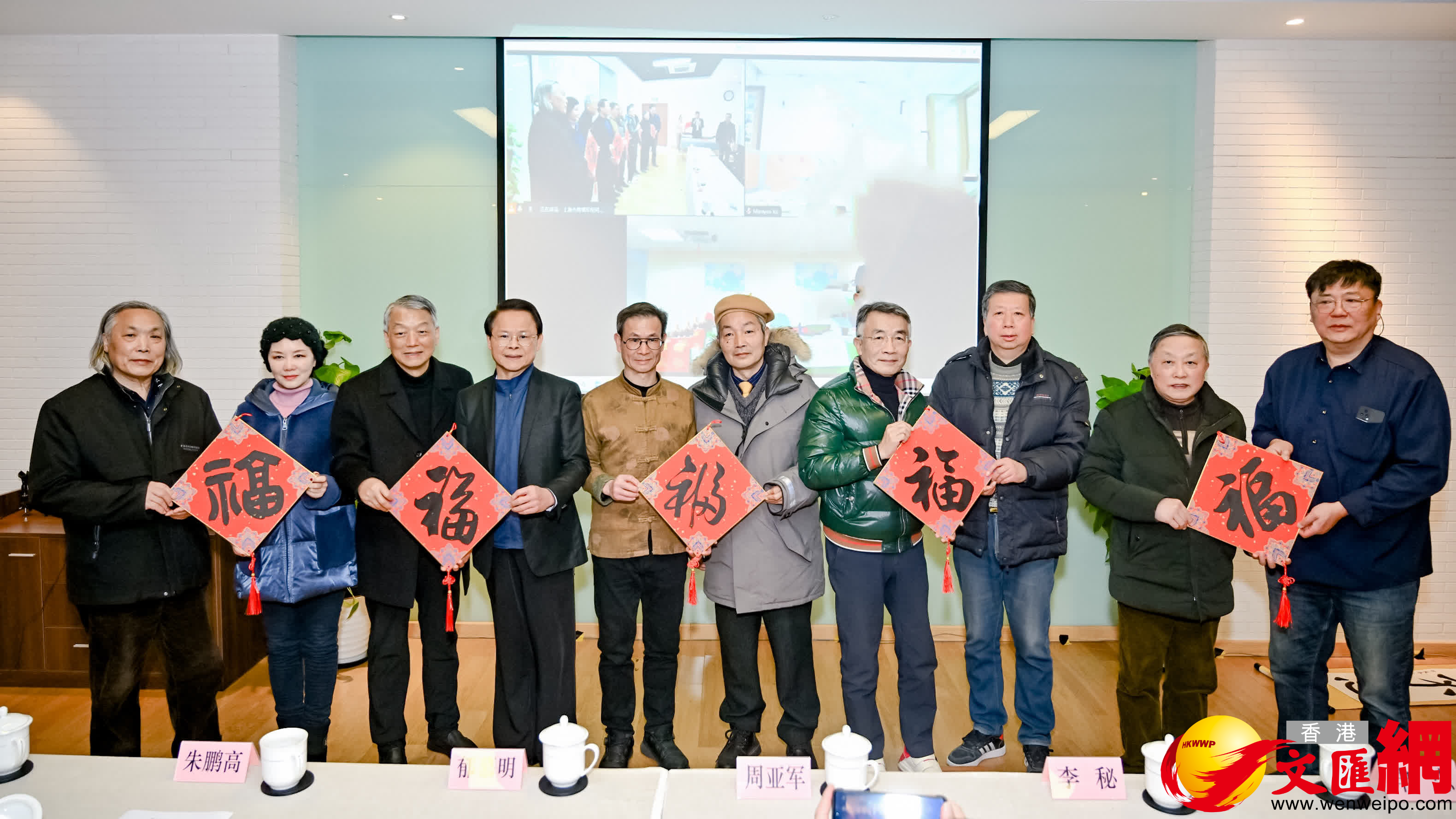 本次筆會由上海市黃埔軍校同學會、上海市公共關係研究院及上海海上書畫院、台灣振興中華民族暨文化經濟促進協會、台灣華夏創意文化交流協會、台灣中華詩詞藝術協會等聯合舉辦。書法家們和不少在滬台胞現場揮毫,創作了50多幅作品,除了傳統的「福」字,家國情懷是大家不約而同喜愛的題材:「兩岸同心歌盛世,江山壯麗沐霞光」、「護我神州、愛我中華」、「華夏文明,兩岸和諧」、「翰墨同舟濟,兩岸共相濡」……表達對國家興盛、兩岸相親的美好祝願。
