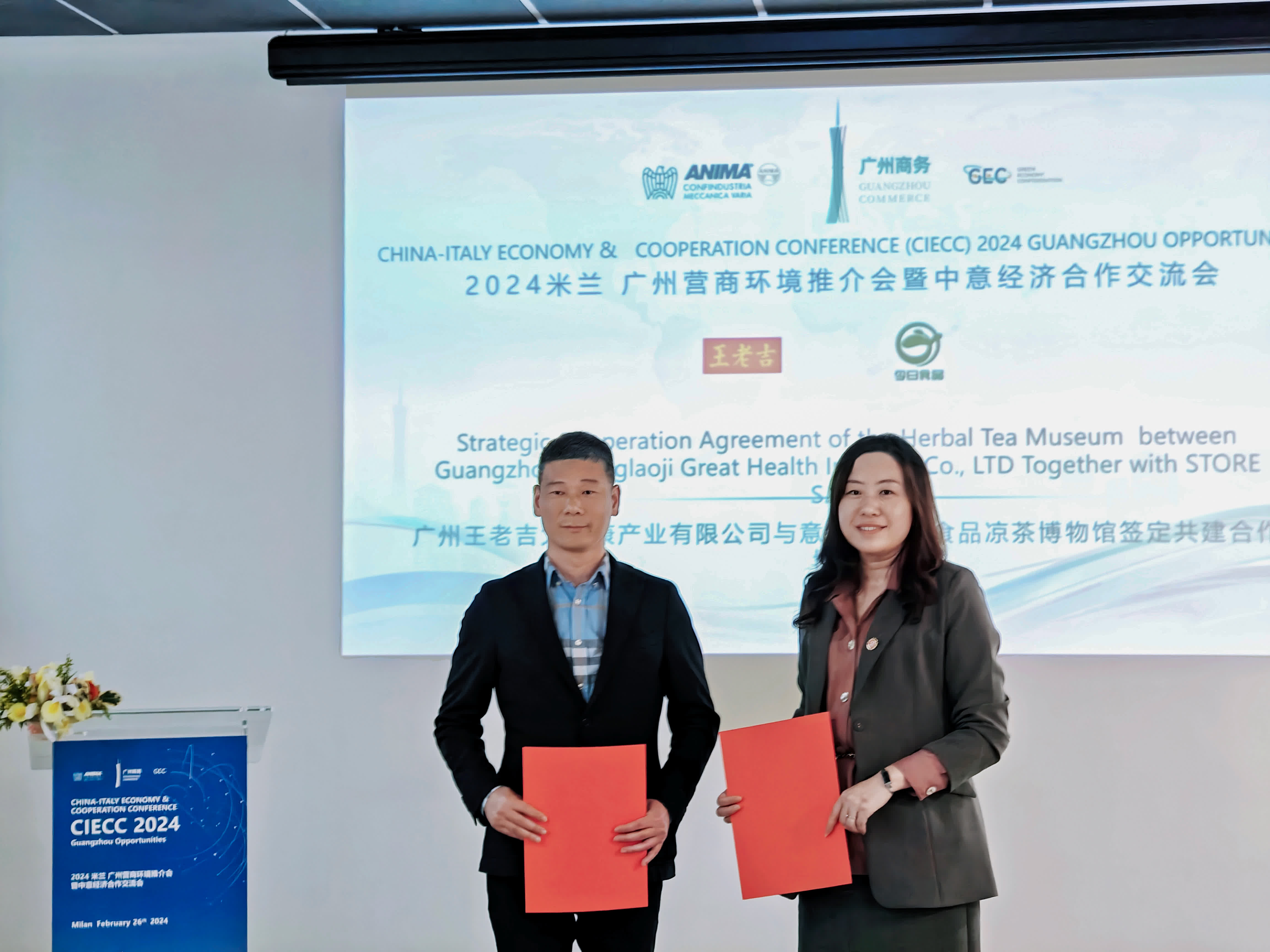 (香港文匯網記者 方俊明)「米蘭-廣州營商環境推介會」暨中意經濟合作交流會近日在意大利舉行。期間,中國「涼茶博物館」簽約落戶歐洲,也是王老吉首家歐洲博物館;此前「紐約涼茶博物館」、「紐約第五大道涼茶博物館」已相繼落成開放。按計劃,涼茶博物館將布局全球達56家,傳播中國涼茶文化。