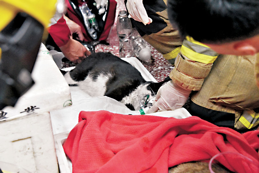 香港文匯報訊(記者 蕭景源)葵涌道德昌大廈8樓一住宅單位昨日下午發生火警,一名男戶主連同7隻貓一度被困,消防到場迅速將戶主救出,但他因吸入過量濃煙不適要送院。至於7隻貓其中2隻在逃生時意外墮樓受傷,另5隻由消防員救出時,當中3隻因吸入濃煙一度昏迷,要戴上氧氣罩協助呼吸搶救;事後全部貓隻無生命危險,由愛護動物協會人員帶回總部作進一步治理。