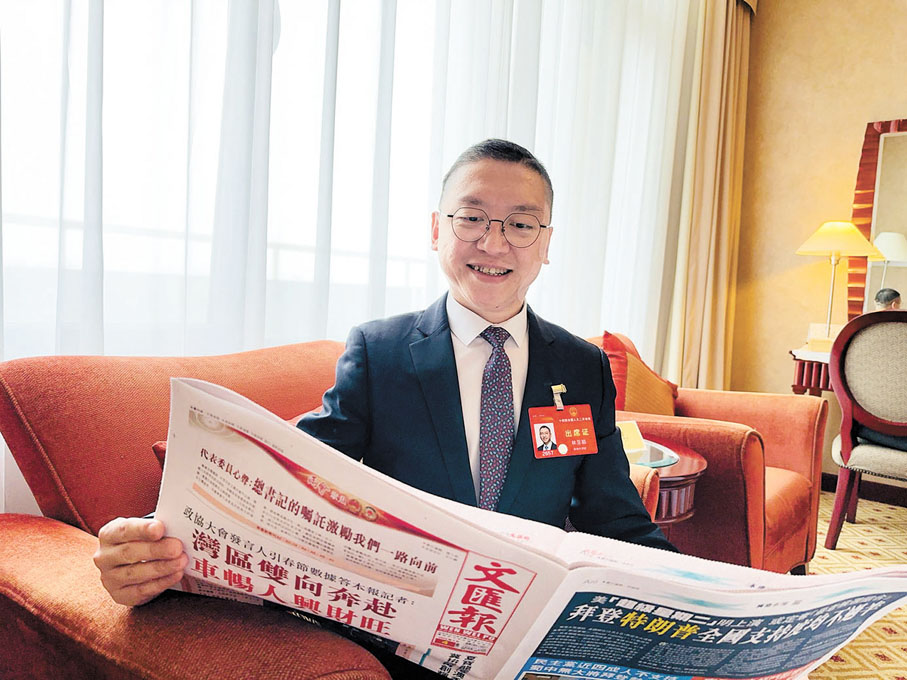 在全國兩會期間及時閱讀準確、深度的信息,不只是一般市民的需求,也是在北京履職的港區全國人大代表的需要。一眾人大代表昨日行程緊湊繁忙,但身為香港文匯報忠實讀者的港區全國人大代表林至頴昨日依然抽時間閱讀,希望從更多視角了解「民聲」,更好地履職。 ◆香港文匯報記者 康敬、柴婧