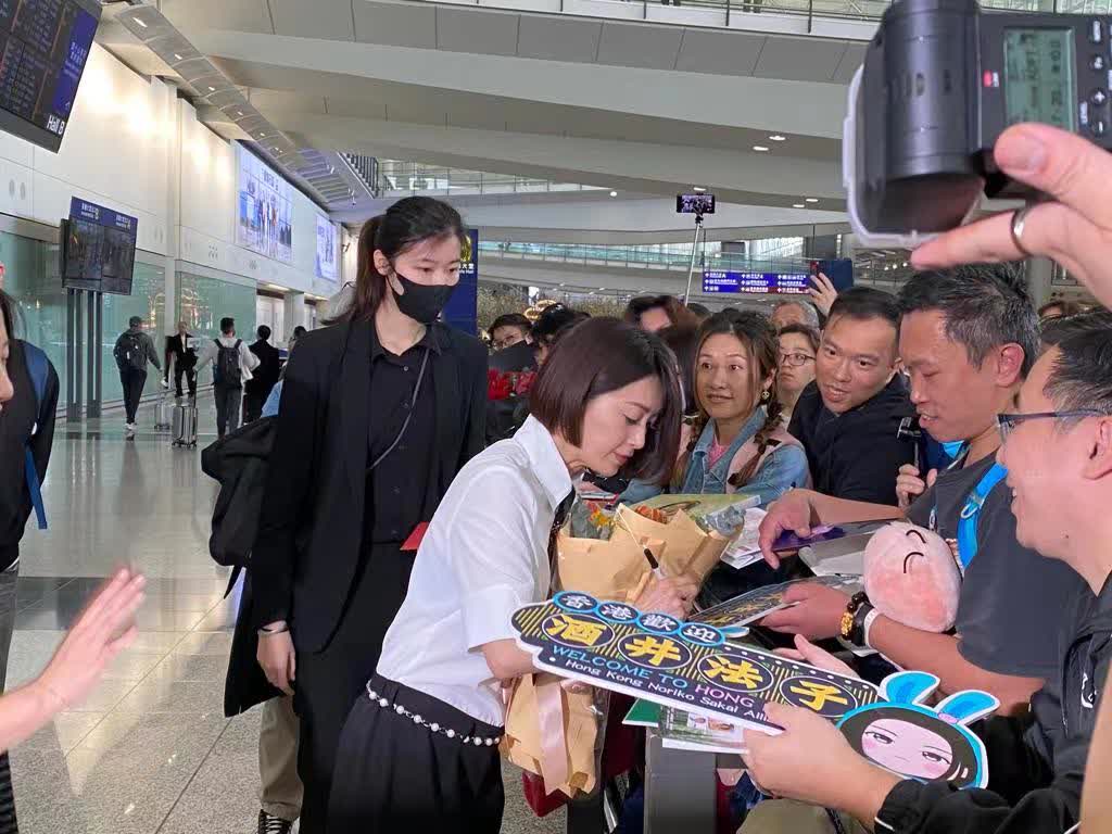 香港文匯報訊 已經5年沒來香港的酒井法子於今(5日) 從東京到港,香港機場現場有接近半百酒井法子的歌迷在場迎接她,他們更携同鮮花和利是預備送給她。當酒井法子步出接機大堂時,她的歌迷很齊心地叫喚她的名字,她也很親民地走到粉絲面前幫她們簽名和影合照。