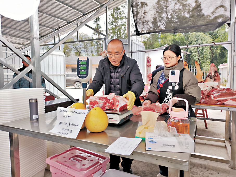 「這一塊黑豬肉在4號鏈接,喜歡的網友可以下單了,希望大家多多支持我們彭家溝村。」春節剛過,彭家溝村愛心助農直播間又開播了。在網友們熱切的關注下,焦憲動作嫺熟地拿起一塊新鮮豬肉,隔着屏幕熱情認真地介紹。「通過『一條龍』的直播帶貨,不僅我們的黑豬肉,還有茶葉、大米等其他優質土特產品,也都以優質優價賣到了上海、廣州等大城市。」焦憲表示,鄉村農副產品農村的電商直播,穩定了老百姓的養殖收入,讓他們看到了希望,不僅大大提高了村民們飼養黑豬的積極性,也增強了繼續發展產業的信心,更給年輕人提供了一個發展的新空間。