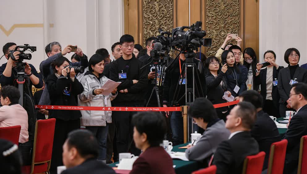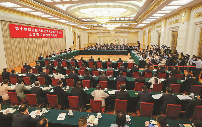 會上,馬欣、吳國平、王進健、李洪耀、徐光輝、殷勇、朱小坤、葉美蘭、肖偉9位代表,圍繞切實扛起「走在前、挑大樑、多作貢獻」的使命擔當,勇當文旅行業高質量發展排頭兵,統籌做好科技創新和產業創新兩篇大文章,以新質生產力塑造高質量發展新優勢,進一步強化企業創新主體地位等方面進行了審議發言。7位中外記者圍繞江蘇科技創新、非遺保護利用傳承、製造業高質量發展等話題現場提問。