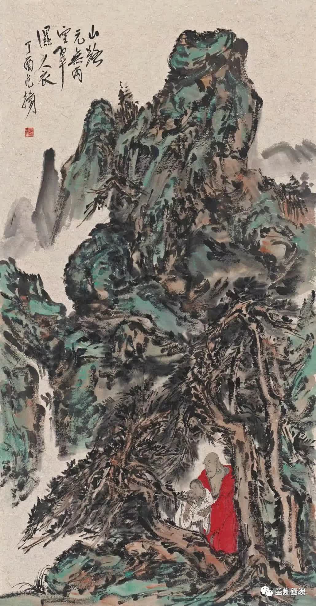 細究自己的觀感,在於發現那些收束、禁錮在青銅禮器中的饕餮紋,通過范揚的率性、遒勁而富有銳氣的筆墨形式得以喚醒和釋放,好比老柳爆出長長的新枝,又似打開柵門之後奔向原野的牛羊,一派蓬勃的生命元氣撲面而來。這當然是我個人的審美想像和解構,不能替代畫家自己認定的藝術門徑。其中緣由,最穩妥的說法只能歸因於「性靈」二字。范揚是繪畫上的通才,山水、人物、花鳥無所不精,題材包羅萬象,聞見之物手到擒來。最顯著的特點莫過於伸張黃賓虹之筆勢,不用皴法也能銜其山川。你看那飛揚恣肆的筆墨樣式,體與勢的動態構成,無不綻放出性靈的力量;丹青水墨的合體也盡顯淋漓之象,反襯出他那極富張力的筆法一種「控引天地」的魔力,從而成就了范揚藝術格清意古的高境界。進一步深入其中,青綠近於玄色的點染,不僅深得青銅禮器綠銹斑駁之神韻,而且折射出遠古文明「有虔秉鉞,如火烈烈」的內在光輝。現在看來,後一點尤其珍貴。