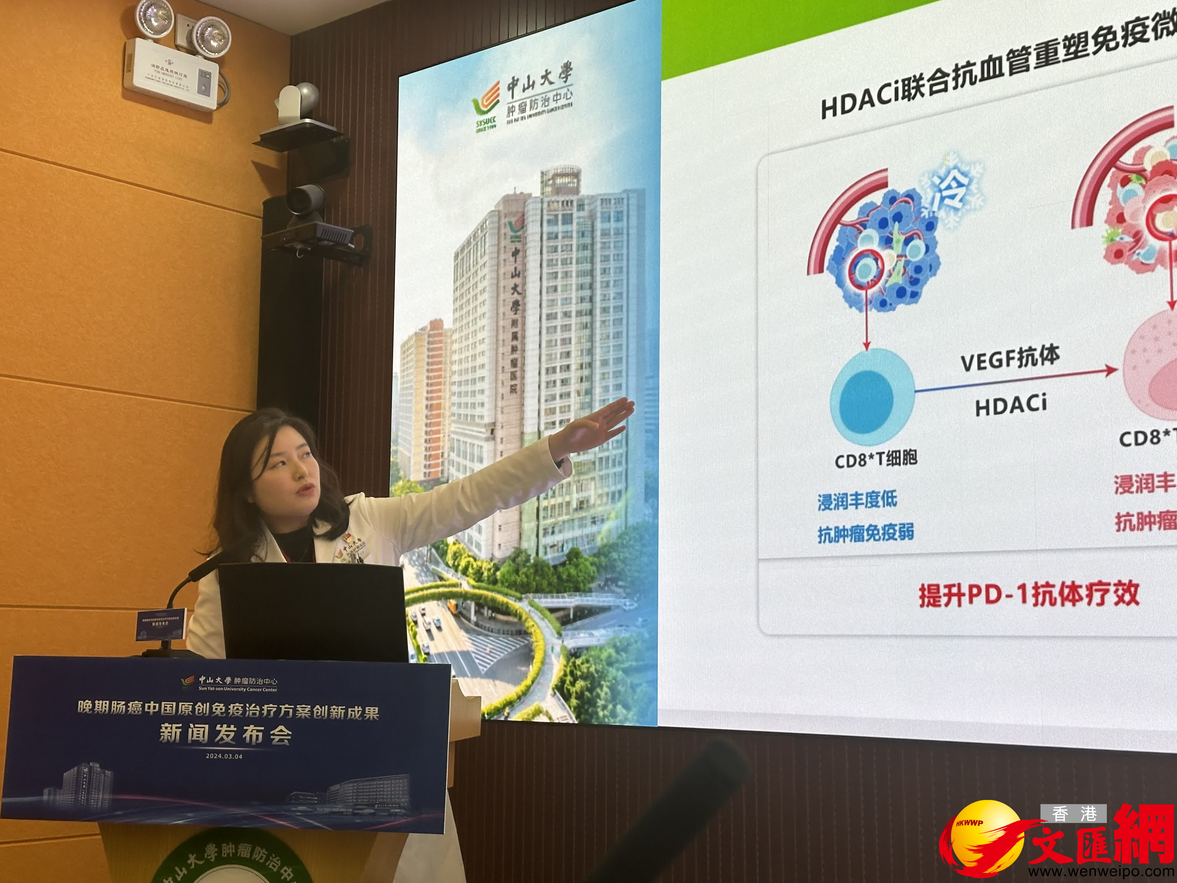 官方統計數據顯示,無論是在香港男性還是女性群體,大腸癌發病率均高居香港常見腫瘤第二位,與內地情況類似。中山大學腫瘤防治中心院長徐瑞華介紹,對於無法手術的轉移性結腸直腸癌患者,目前採用的標準治療方案包括化療、靶向治療,但患者生存期有限。近年來大熱的免疫治療方法,卻不能讓占腸癌95%的微衛星穩定型/錯配修復正常(pMMR/MSS)類型的腸癌患者從中獲益。為此,如何破解免疫治療在晚期腸癌中的治療困局,一直是腸癌治療中的熱門探索方向。