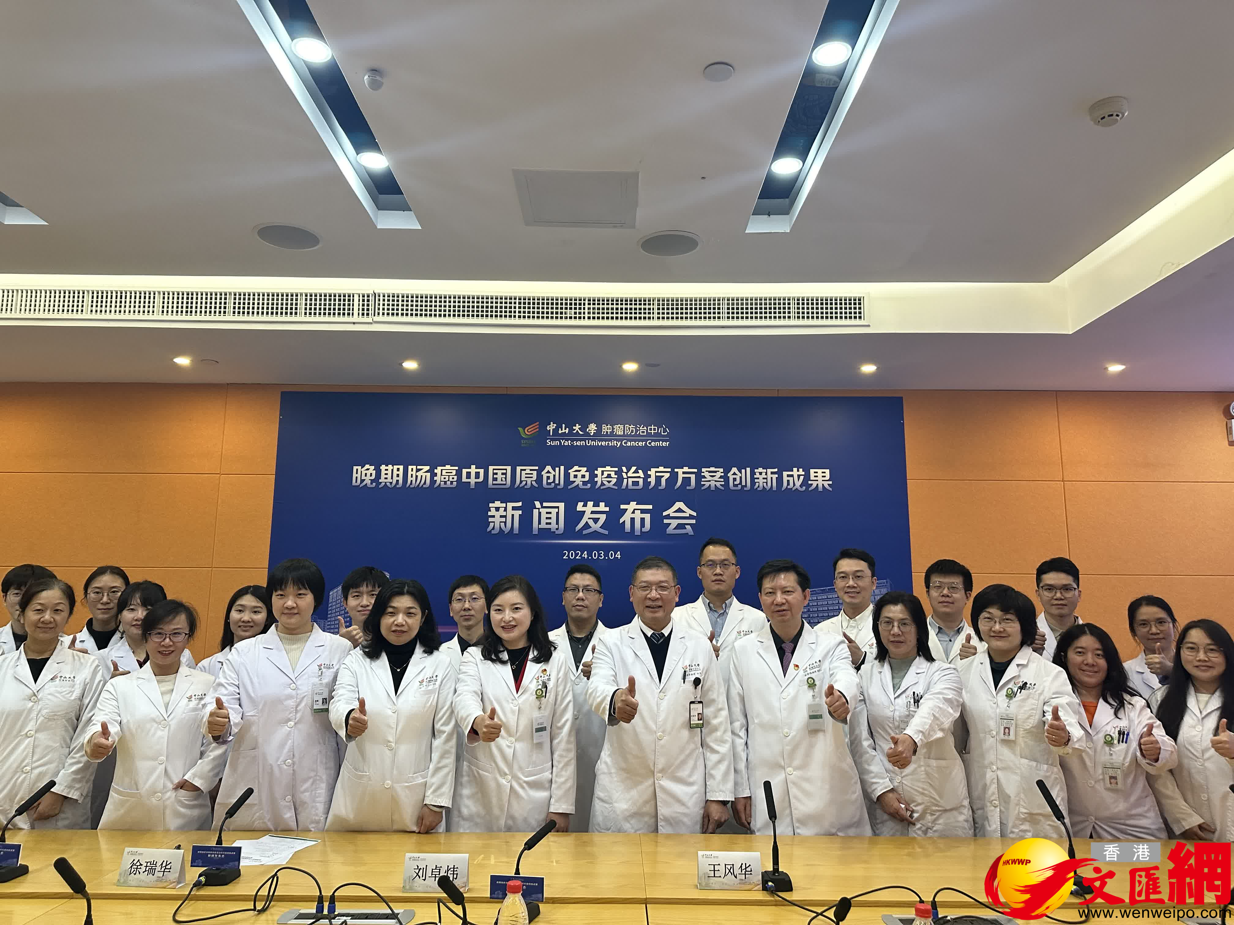 (香港文匯網記者 敖敏輝 實習生 黎詩彥 廣州報道)結直腸癌是我國常見且高發的惡性腫瘤之一,在香港十大常見腫瘤中亦高居第二位。然而,不少類型腫瘤通過免疫治療取得明顯效果,但在腸癌治療中卻尚未取得突破。近日,國際頂級醫學期刊《自然醫學》(Nature Medicine)發表文章,報告了由中山大學腫瘤防治中心徐瑞華、王峰教授牽頭針對晚期直腸癌開展的一項臨床研究成果。研究結果顯示,與傳統方式相比,新的三藥聯合用藥方案對標準化療失敗的晚期腸癌患者有效率達到44.0%,中位無進展生存期從目前的1個多月延長到7.3個月,提升近4倍,這也使得中國科學家在免疫治療晚期腸癌這一「無人區」探索出了一條全新的道路。