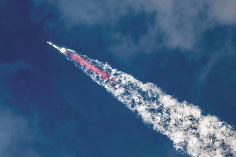 香港文匯報訊 美國太空探索科技公司SpaceX新一代太空飛行器「星艦」,於美國得州當地時間周四(3月14日)上午8時25分(香港時間周四晚上9時25分)進行第三次試射。今次相較過去兩次試射表現較佳,火箭推進器與飛船成功分離,但飛船在近地軌道飛行約30分鐘後,返回地球期間失去訊號,SpaceX相信飛船已經墜毀。