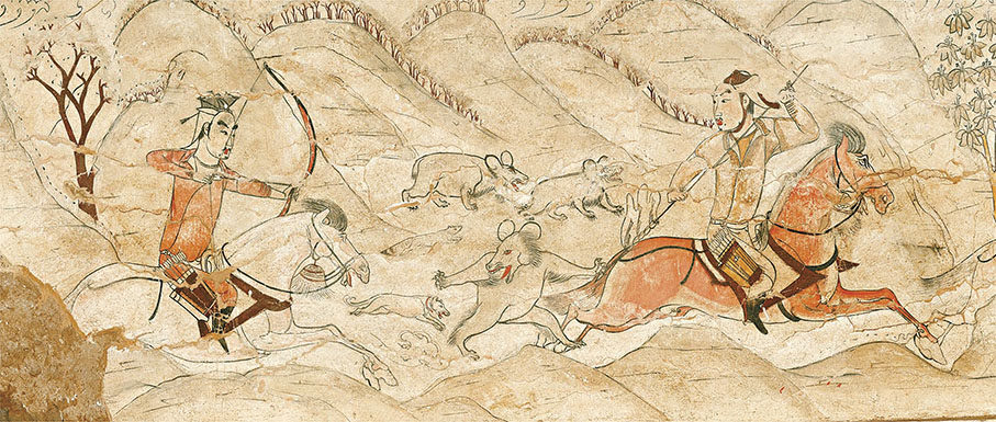 北齊權臣貴戚東安郡王婁睿墓最為著名的是《鞍馬游騎圖》,全墓壁畫中200餘匹馬的形象無一重複,用國畫大師吳作人的話來說,「使千百年來徒憑藉志、臆見梗概的北齊繪畫,陡見天日,使中國繪畫史,猶長河萬里,源流更匯支流,空缺得以證實」。婁睿墓壁畫填補了美術史上北朝繪畫的空白,其藝術成就承漢晉而啟隋唐,足以印證北朝畫壇的瑰麗氣象。