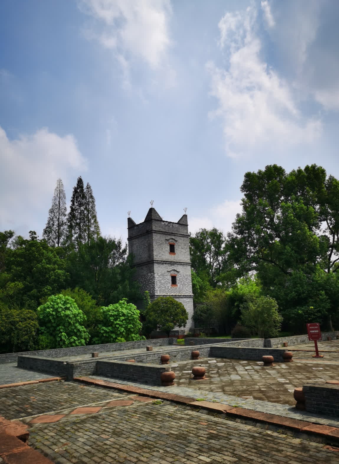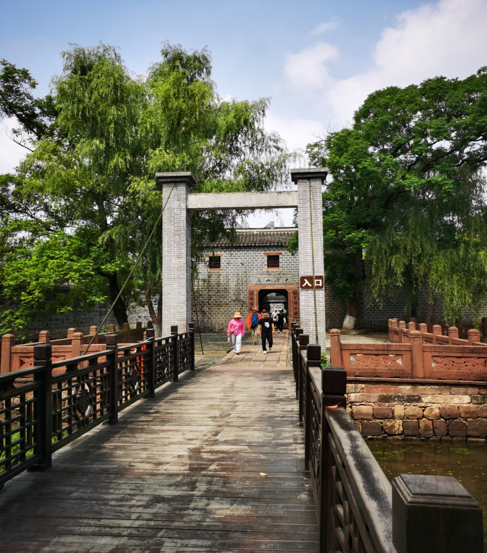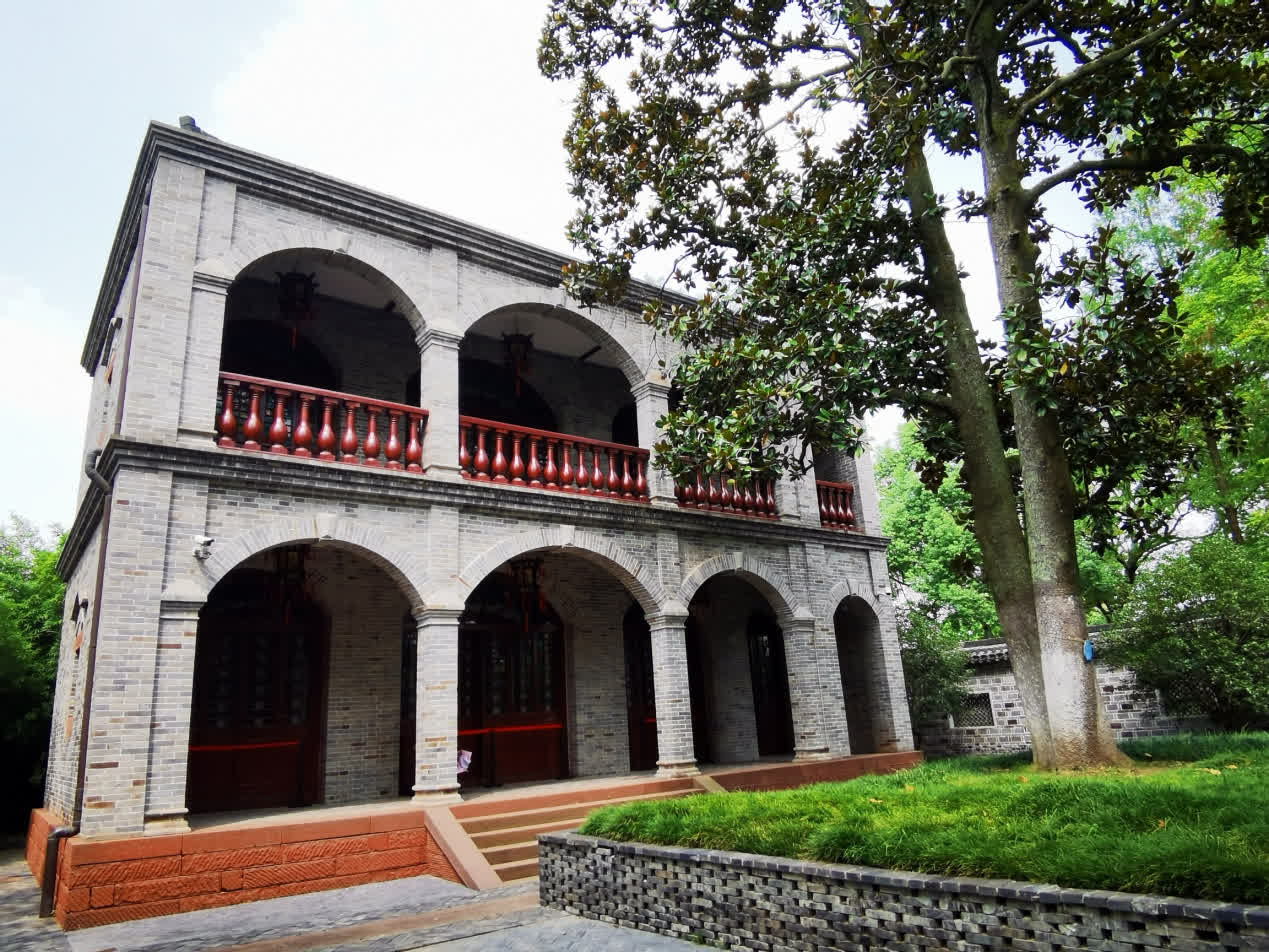 故居是在他功成名就之際所建。現存的古建築達兩千多平米。沿着山門中軸一字排開,被一圈護城河緊緊包圍,儼然就是一個時刻準備打仗的堡壘。中軸兩邊,依次有南門樓、北更樓、盤亭、西洋樓、鋼叉樓、大島讀書房,這些建築中西合璧,有中式也有西式。
