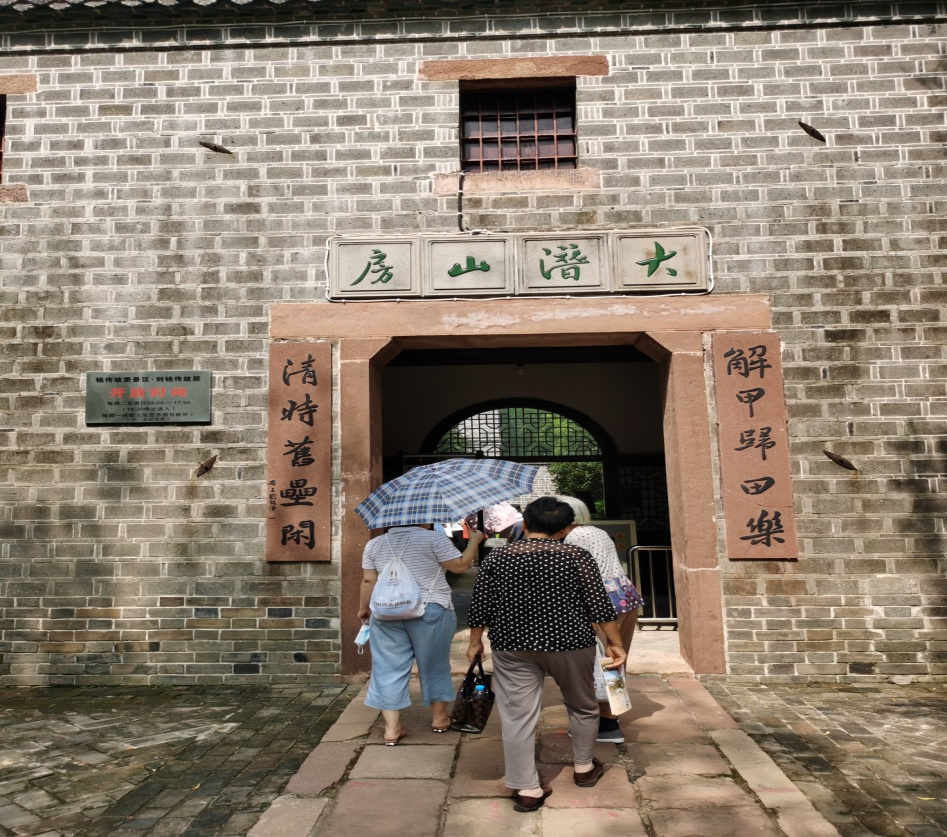 再往裏走,有一座石質旱橋連着,猶如城門的弔橋,下面就是護城河。過了護城河,有一座石門,才是故居正門,上書「大潛山房」四個大字。劉銘傳,字省三,自號大潛山人,因排行第六、臉上有麻點,人稱劉六麻子,安徽合肥(今肥西大潛山麓)人,清朝末期淮軍重要將領,洋務派代表人物,台灣省首任巡撫。門口對聯是「解甲歸田樂,清時舊壘閑」。劉銘傳一生多次辭官歸隱,又多次起赴重任。這就是其真實寫照。