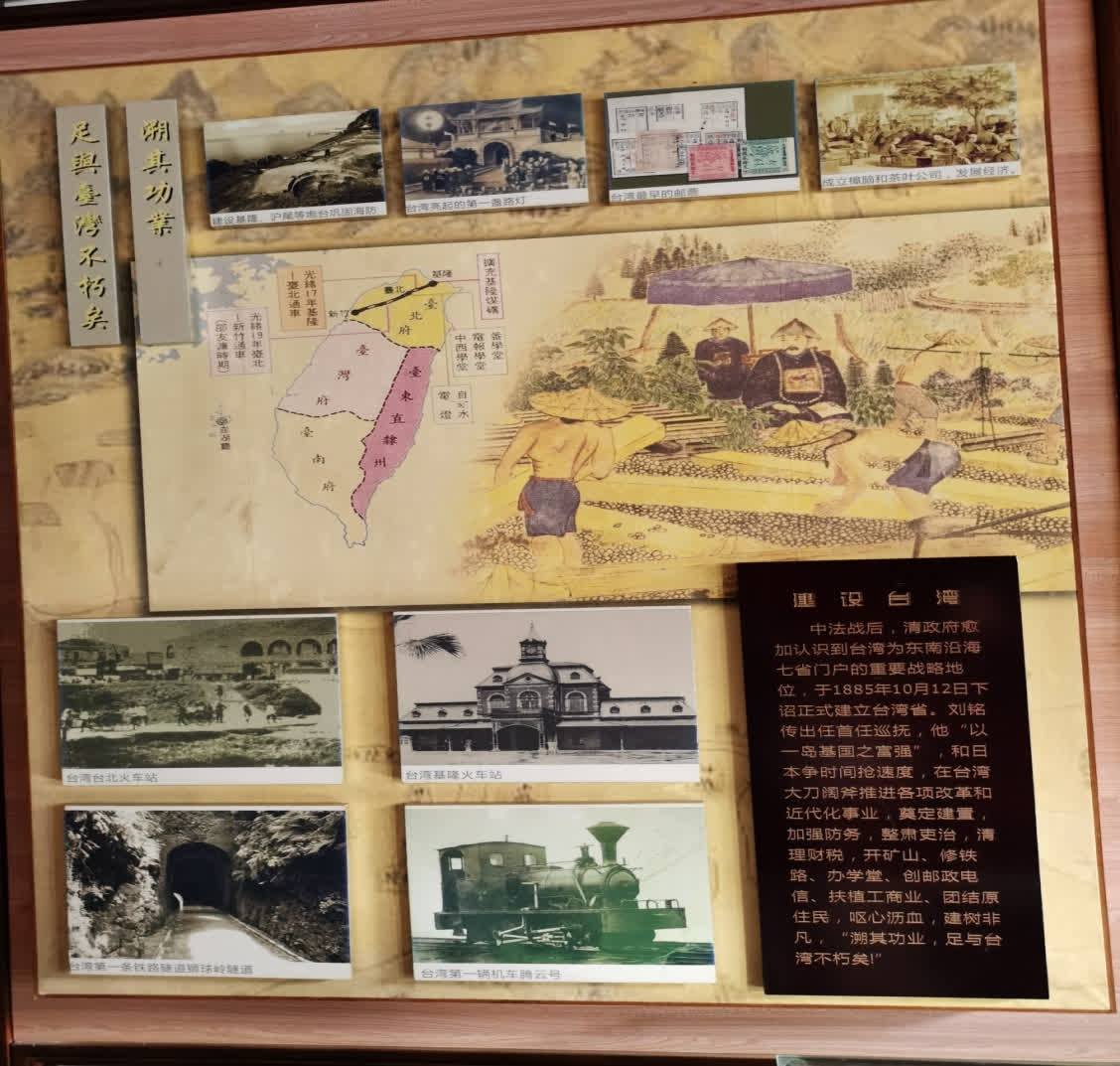 1885年(光緒十一年),清廷任命劉銘傳為首任台灣省巡撫。在台灣,他修鐵路,開煤礦,創辦電訊,改革郵政,發展航運事業,促進台灣貿易,發展教育事業,促進台灣近代工商業的發展,台灣防務也日益鞏固。
