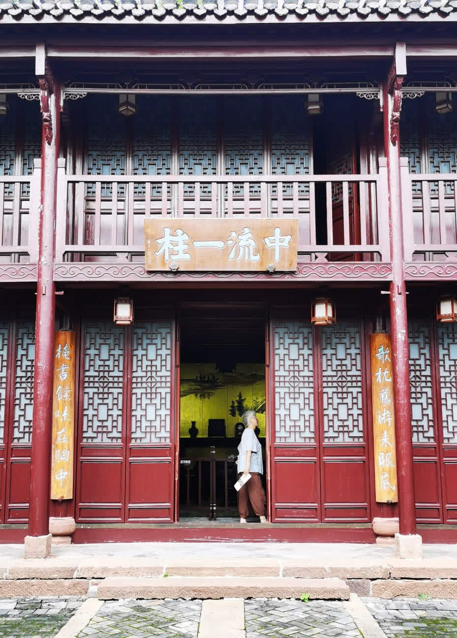 你看他的書房門頭是「中流一柱」,門口對聯是「倚枕久遊來眼底,掩書餘味在胸中」。他堪稱中流砥柱,但皆成歷史。