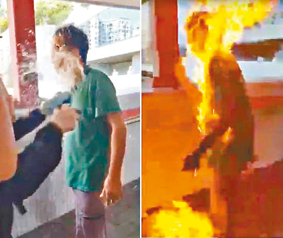 當時,血流披面的李伯路見不平,即使被襲擊仍負傷追逐行兇黑衣人,一直追到行人天橋,不料反被黑衣人與同伴轉身包圍辱罵,其中一人對他淋電油,另一人放火,李伯瞬間變成「火球人」,整個過程不足數秒,手段殘酷、冷血。