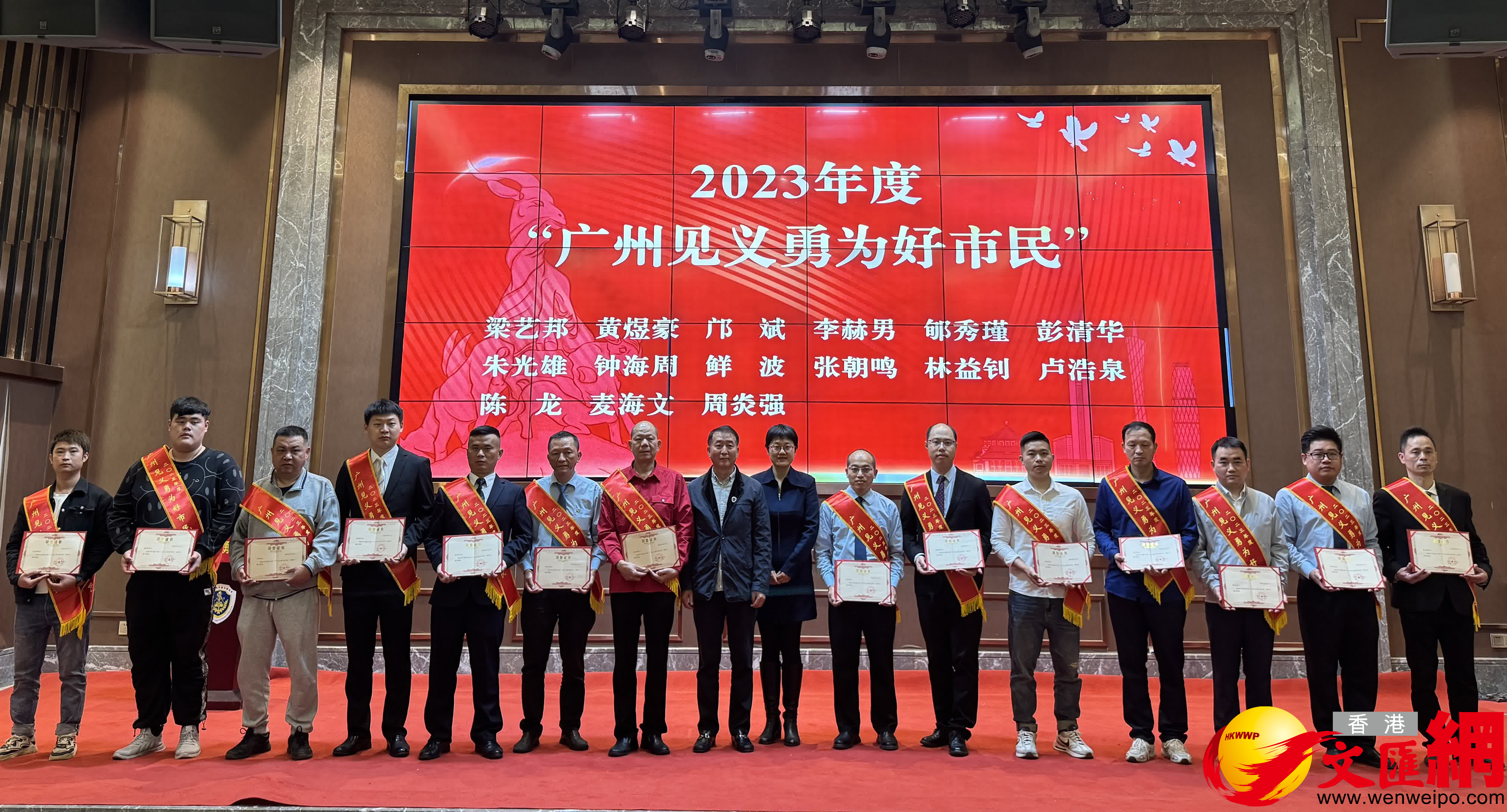 (香港文匯網記者 李紫妍 廣州報道)「香港、澳門居民的見義勇為事跡,是同等納入評選和慰問等獎勵活動的。」廣州市見義勇為基金會20日舉辦2023年度「廣州市最美見義勇為平民英雄」、2023年度「廣州市見義勇為先進集體」慰問獎勵儀式暨2024年第一批見義勇為平民英雄集中慰問獎勵活動,基金會理事長蔡巍介紹,根據基金會章程,發生在廣州區域內的見義勇為行為,以及廣州籍人士在外地的見義勇為行為,皆可參與評選。其中,前者不限見義勇為人員戶籍(國籍),港澳居民、外地居民、外國人士等可同等納入相關評定和慰問獎勵。