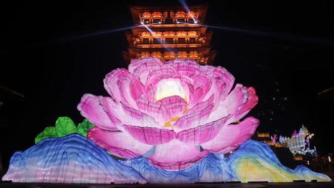 (香港文匯網記者 劉蕊 河南報道)中國一座城市用一個巨大的花燈打破了世界上最大立式花燈的吉尼斯世界紀錄。根據吉尼斯世界紀錄消息,為龍年洛陽牡丹閣燈會製作的「牡丹燈皇」直徑約45米,高度約24.8米,寬約19.7米。這個花燈由200多名工人組成的團隊製作而成,重45噸,配重40噸。相當於8層樓高,100個成年人肩並肩站立的長度,內部光源使用達53000餘個。